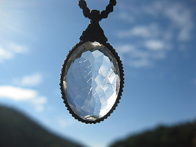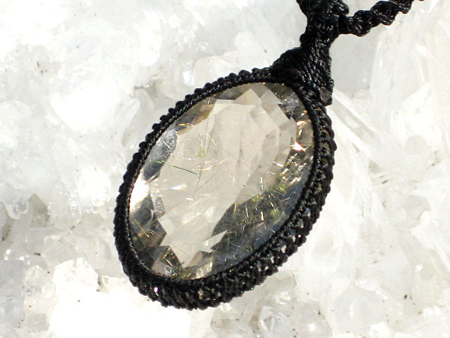 ★金針水晶★ブリリアントカット★ゴールドルチルクォ―ツ★天然石ネックレスペンダントマクラメ編み★ヒマラヤンクリスタルビーズ kamesan
