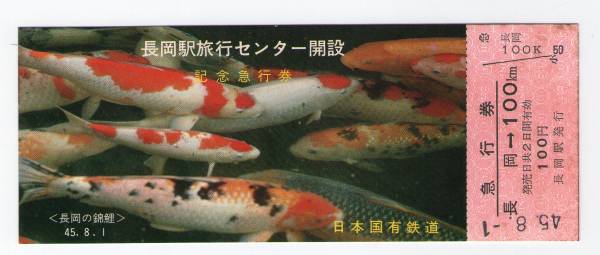 ☆急行券/長岡/長岡旅行センター開設☆長岡の錦鯉