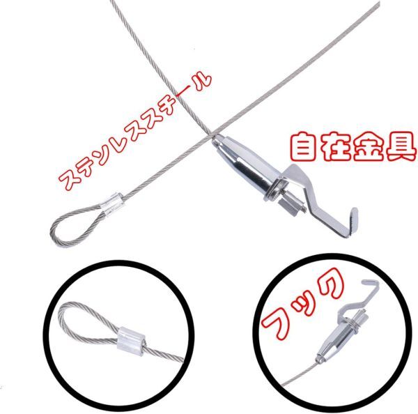 ★材質:ピクチャーレールワイヤーはステンレス製です。優れた防錆性、耐久性。使用荷重は約20kg。