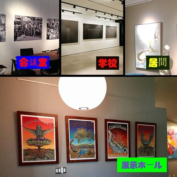 ★応用:ピクチャーレールワイヤーは絵画、写真、ポスターなど美術品などを吊るときに使用されます。