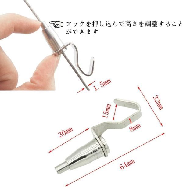 ★高さ調節:ワイヤーフックの位置は上下に調整できます、掲示物の位置はフックのピンを押し込むだけで、お好みの高さへ無段階調節できます。