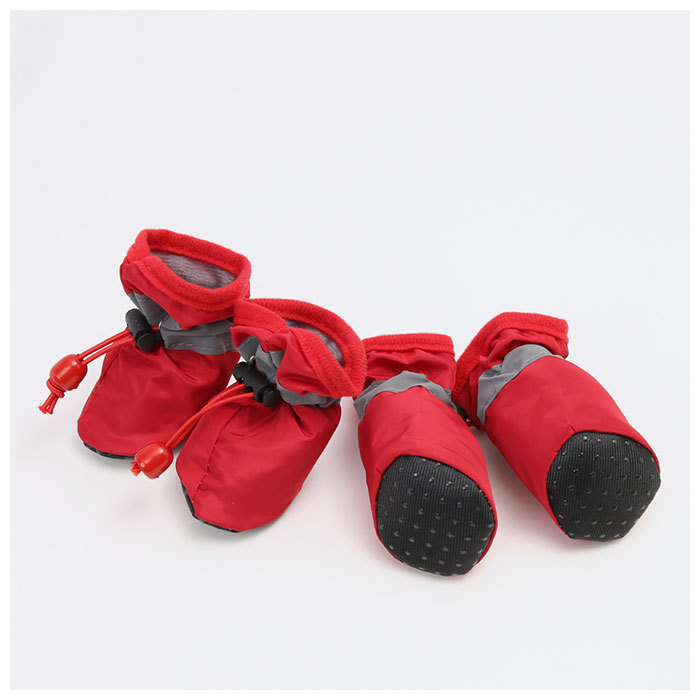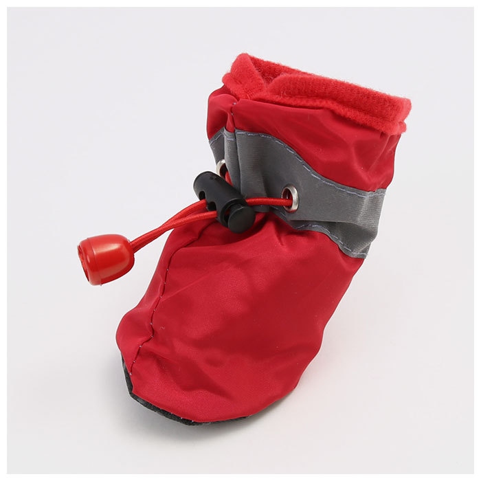 | 商品説明 | ・デリケートなワンちゃんの足元を保護する、ドッグシューズ。 ・足首をドローコードで留めることができるから、脱げにくく歩きやすい◎ ・内側はソフトな素材を使用しており、肉球を傷つけずワンちゃんの足元を守ってくれる。程よい保温性もあり、秋冬時期の防寒用にもオススメ。 ・靴底に滑り止め付きで、室内はもちろんお散歩時も安全。 ・表面に撥水性のある素材を使用しているので、雨の日も足を汚さずお散歩できる。さらに夜のお散歩も安心の反射テープ付き。 ・トゲやガラス等による傷や夏のアスファルト焼け、ほこりや汚れ防止、冬の凍傷予防などに最適。(※生産時期によって、色味のばらつきがあります。ご了承ください。) |