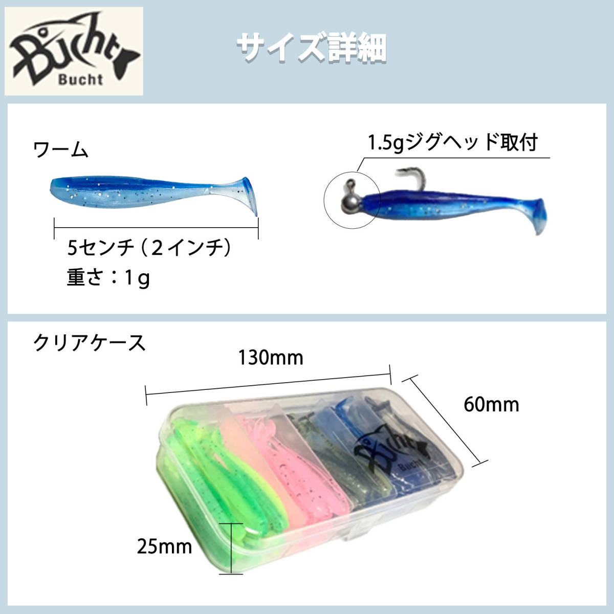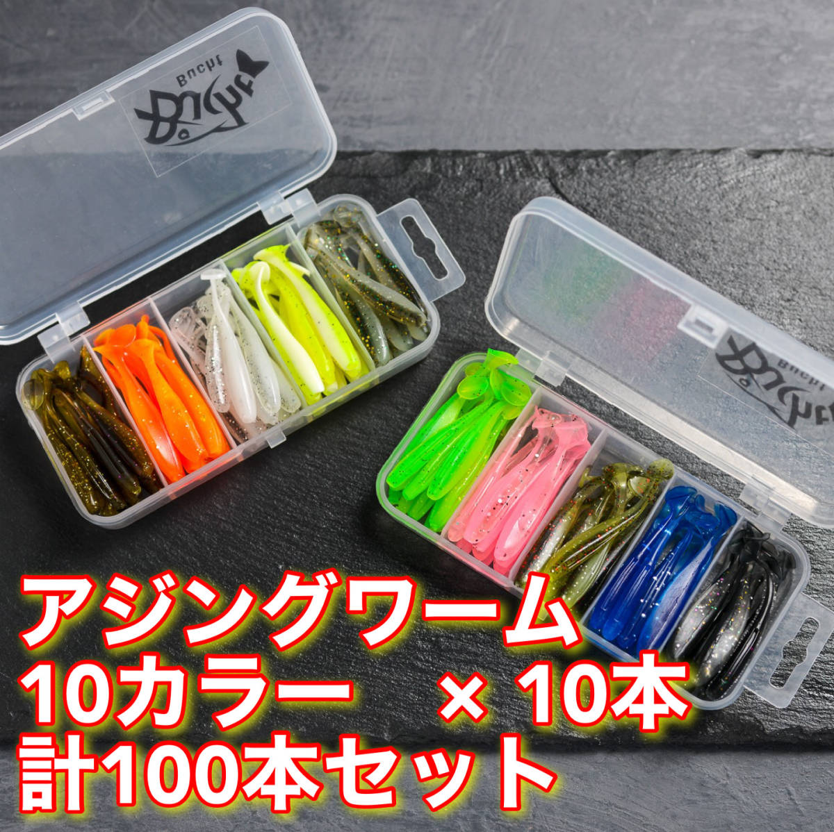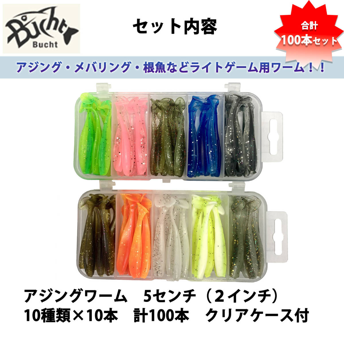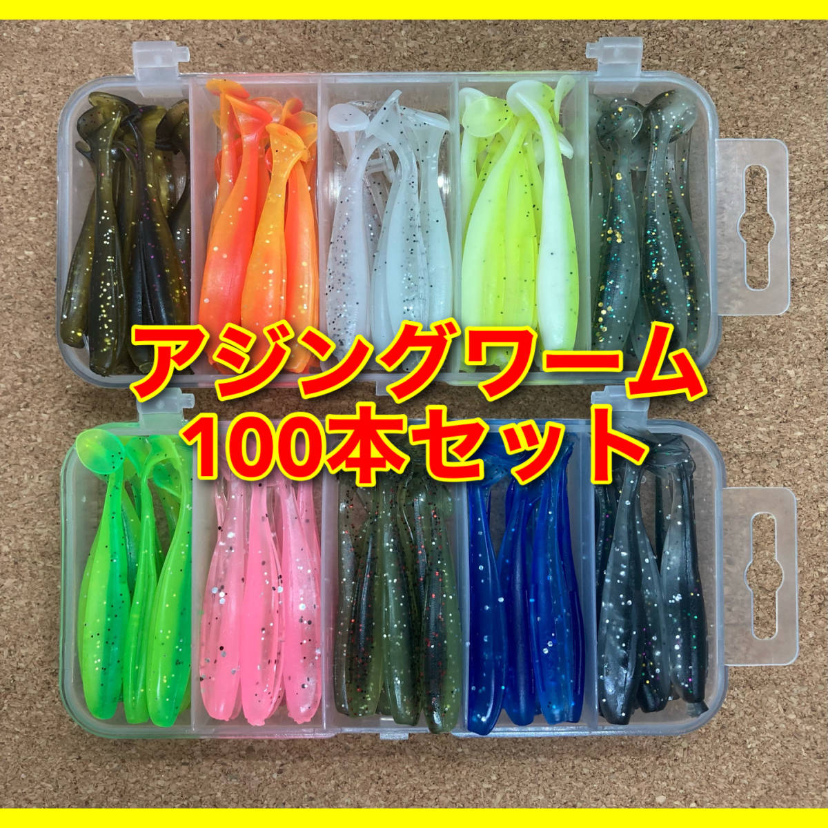 アジングワーム 100本セット 5センチ ケース付 ワーム ルアー ジグヘッド 釣り メバリング 月下美人