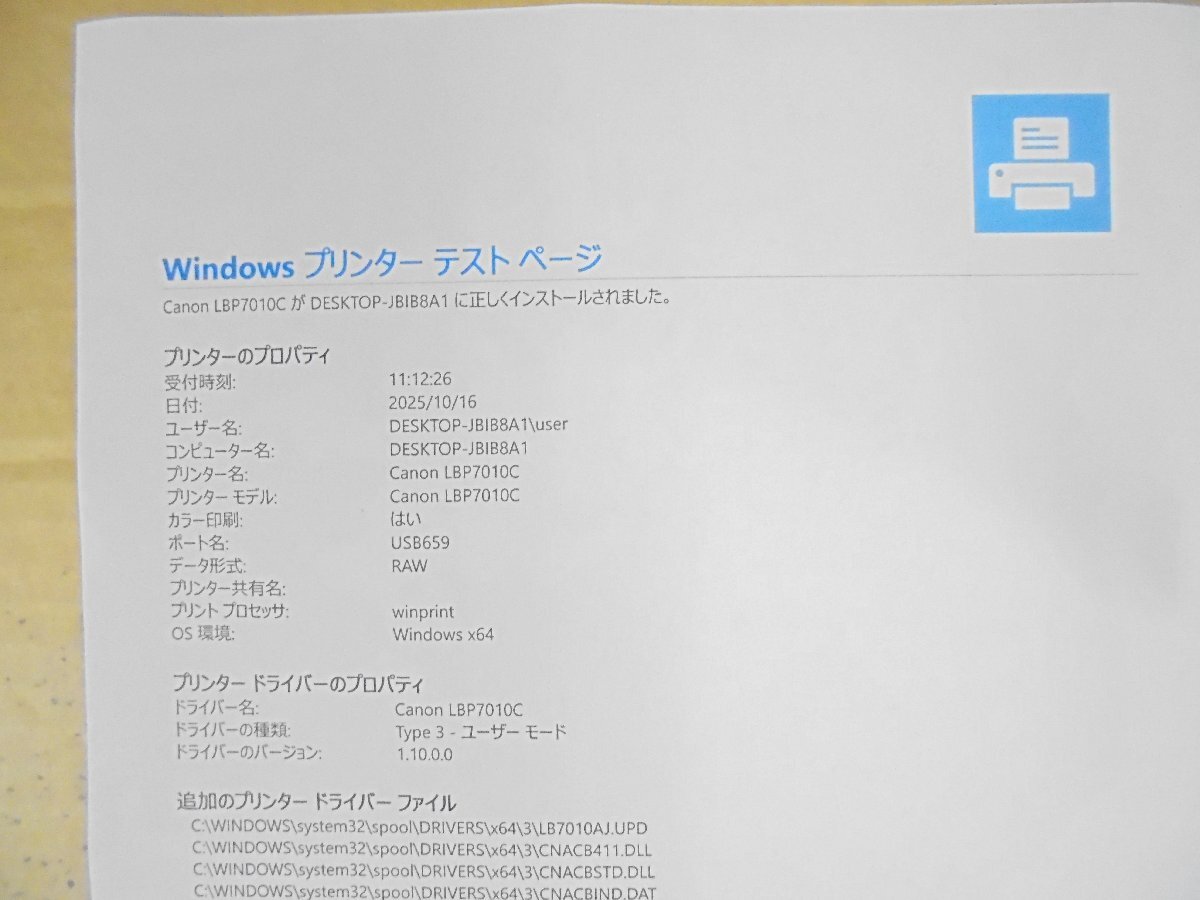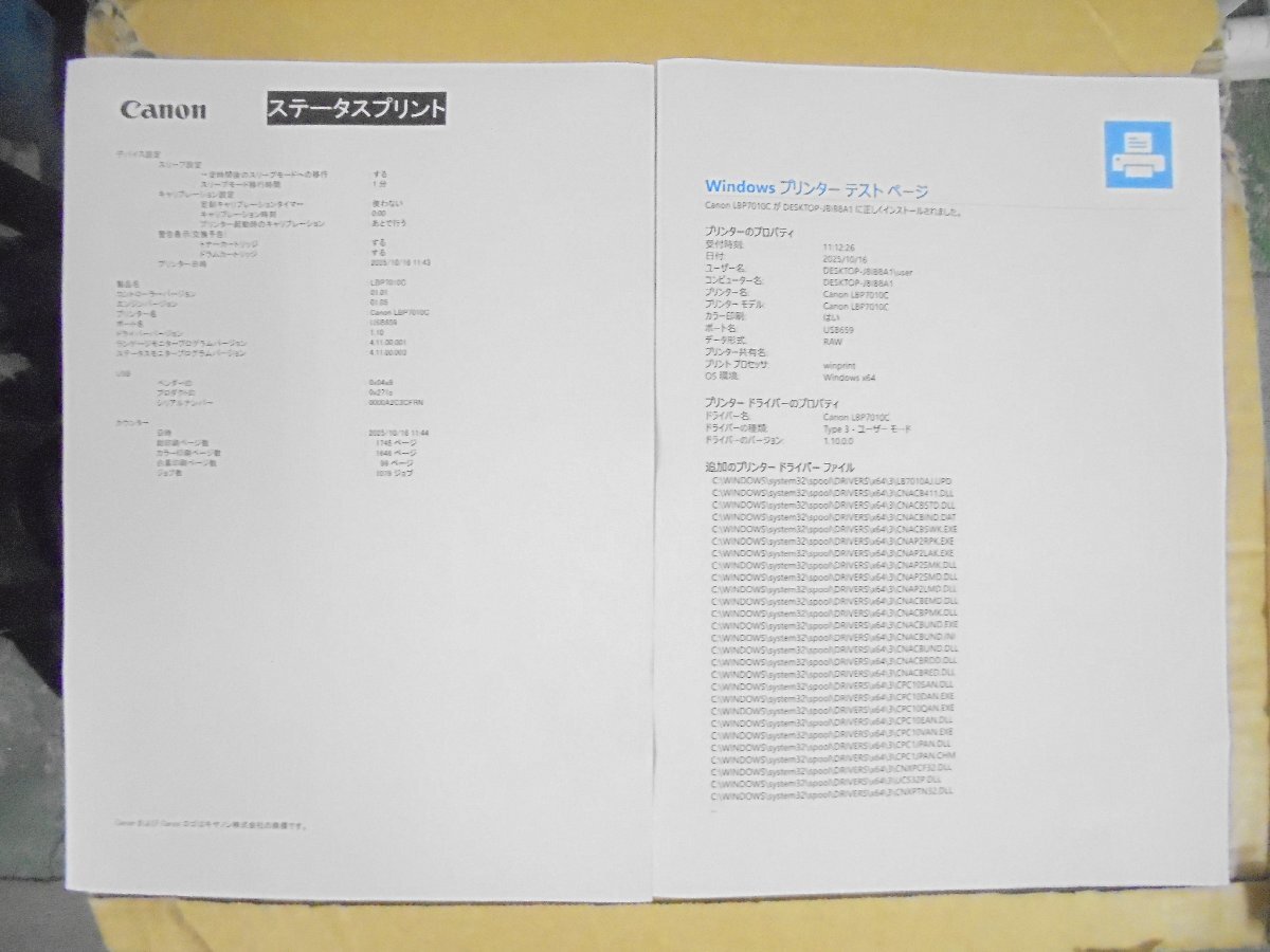 給紙トレイからの印刷動作確認済み。 連続印刷動作確認済み。 USB動作確認済み。 |