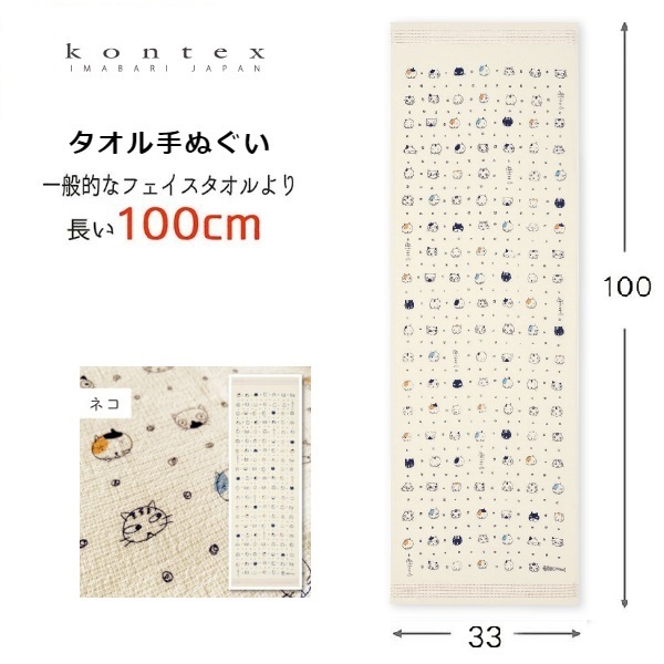 kontex コンテックス タオル手ぬぐい 布ごよみ ネコ 62180 てぬぐい タオル 吸水 速乾