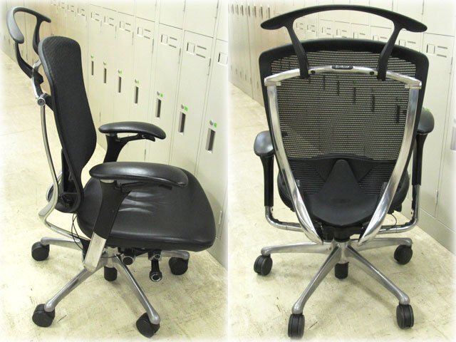 オカムラ ハンガー付革張チェア コンテッサ CM32AB-FBG1+CM926Y-G721 を出品いたします。 ■特徴■ スタイリッシュなデザインと先進のメカニズム 世界で認められた革新的な タスクチェアContessa[コンテッサ]。 そこにあるのは、さまざまなワークシーンや 姿勢に応える優れたフィット感と スマートオペレーションコンセプト。 この個性的なデザインと機能は、 ワーカーに新たなインスピレーションを与えます。 Ergonomic Concept Contessaシリーズは、その快適な座り心地と シンクロリクライニング機構に加え、 座ったままの自然な姿勢で基本的な調整が簡単に行える 「スマートオペレーション」を実現。 左右のアームレストの先端レバーで 座面の高さとリクライニングを調整できるなど、 他では得られないフィット感と 使いやすさを実感いただけます。 リクライニング角度の調整 リクライニング角度の調整 左アームレストの先端にあるレバーで、 リクライニング角度の調整を簡単に行うことができます。 座面の上下移動の調整 右側のレバー操作により、 座面の上下移動の調整(ストローク:100mm)を 簡単に行うことができます。 リクライニング角度の固定 リクライニングは、左レバーの操作により、 フリーロッキングおよびお好みの角度(5段階)での 固定が可能です。 ロッキングの強弱調整 ロッキングの強弱調整 ロッキングの強弱を調整するダイヤル。 体型やお好みに合わせて、 リクライニングの固さを座ったままで調整できます。 アームレスト アームレストはラチェット式で、 座ったままの姿勢で軽く持ち上げるだけで 高さ調節(100mm)が可能です。 アームパッド アームパッドは30°(内20°、外10°)の角度調節ができ、 コンピュータ操作時などに肘全体をやさしくサポートします。 75mmの大型キャスター 直径75mmの大型キャスターを採用。 座ったまま動く時などの抵抗が小さく、 腰への負担を軽減します。 ハンガー 上着を掛けたときも椅子全体としての 美しさのバランスがくずれない、 スタイリッシュなハンガーを用意しました。 座部革にシワなど若干の使用感はありますが、 大きな傷みはなく使用に差し支えはありません。 通常オプションのハンガー付のお買い得品です。 各機構動作確認済みです。 写真に写っている周りのものは付属しません。 発送はアート家財おまかせ便でお送りします。 定価はあわせて172,500円の非常に高価な商品です。 格安出品いたしますのでこの機会をお見逃しなく!  |