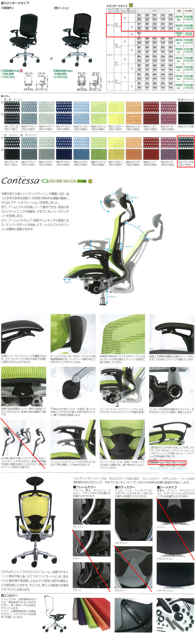 | メーカー・型式 |  オカムラ / コンテッサ CM32AB-FBG1+CM926Y-G721 (※座裏の製品ラベル記載型式はCM55AB-P676)  |