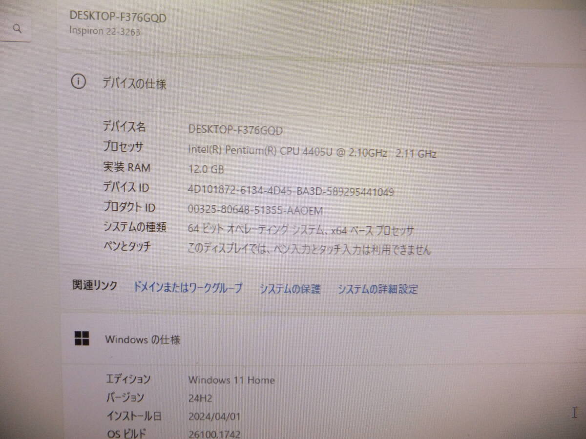 | (1588) 秒速起動SSD254GB dell一体型 】 Inspiron 3263 AIO Pentium 4415U 2.30GHzメモリ8GB Windows11Home 64bitです(動作品..) | |