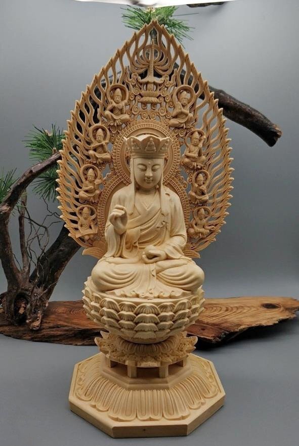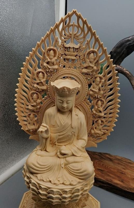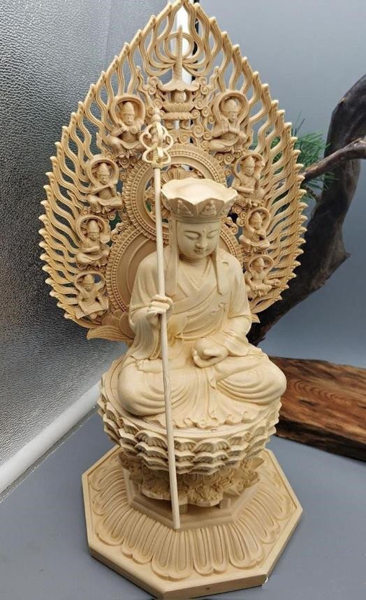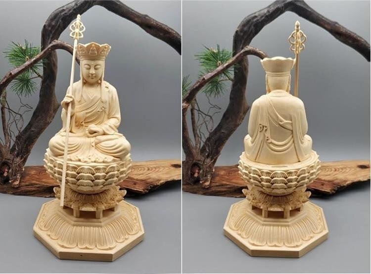 新作★極上品★木彫仏像 地蔵菩薩 仏教美術 木造地蔵菩薩 蓮華丸台座 総高28cm