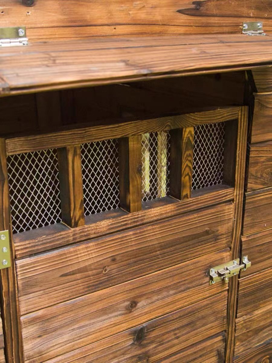 犬小屋の換気を促進し、良好な状態で室内の空気を保つために、側のギャップ窓があります。