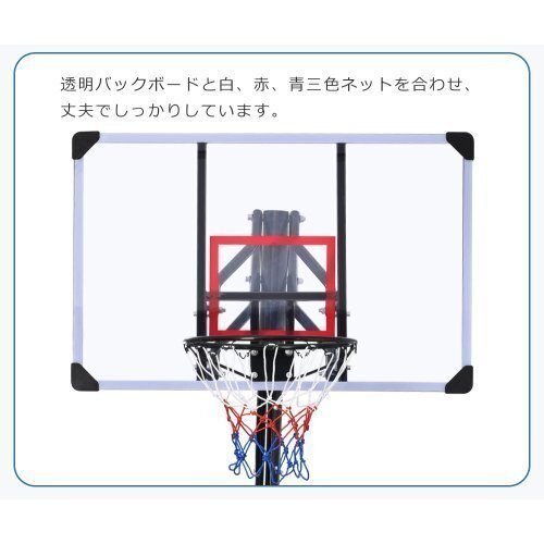 バスケットゴール ハンドルを回すだけの簡単高さ調節 公式&ミニバス対応 230-305cm 移動可 工具付き ゴールネット バックボード リング