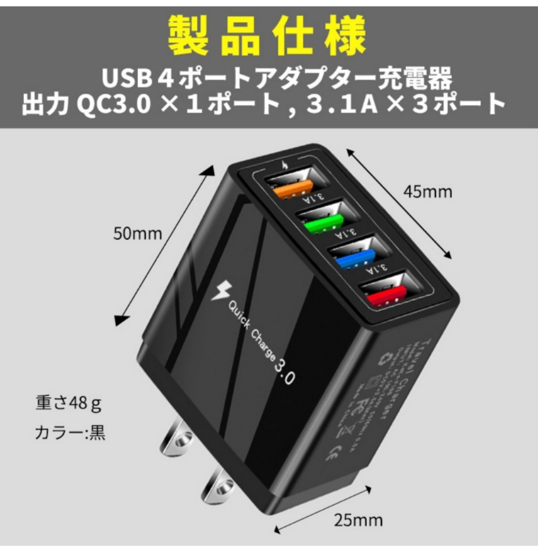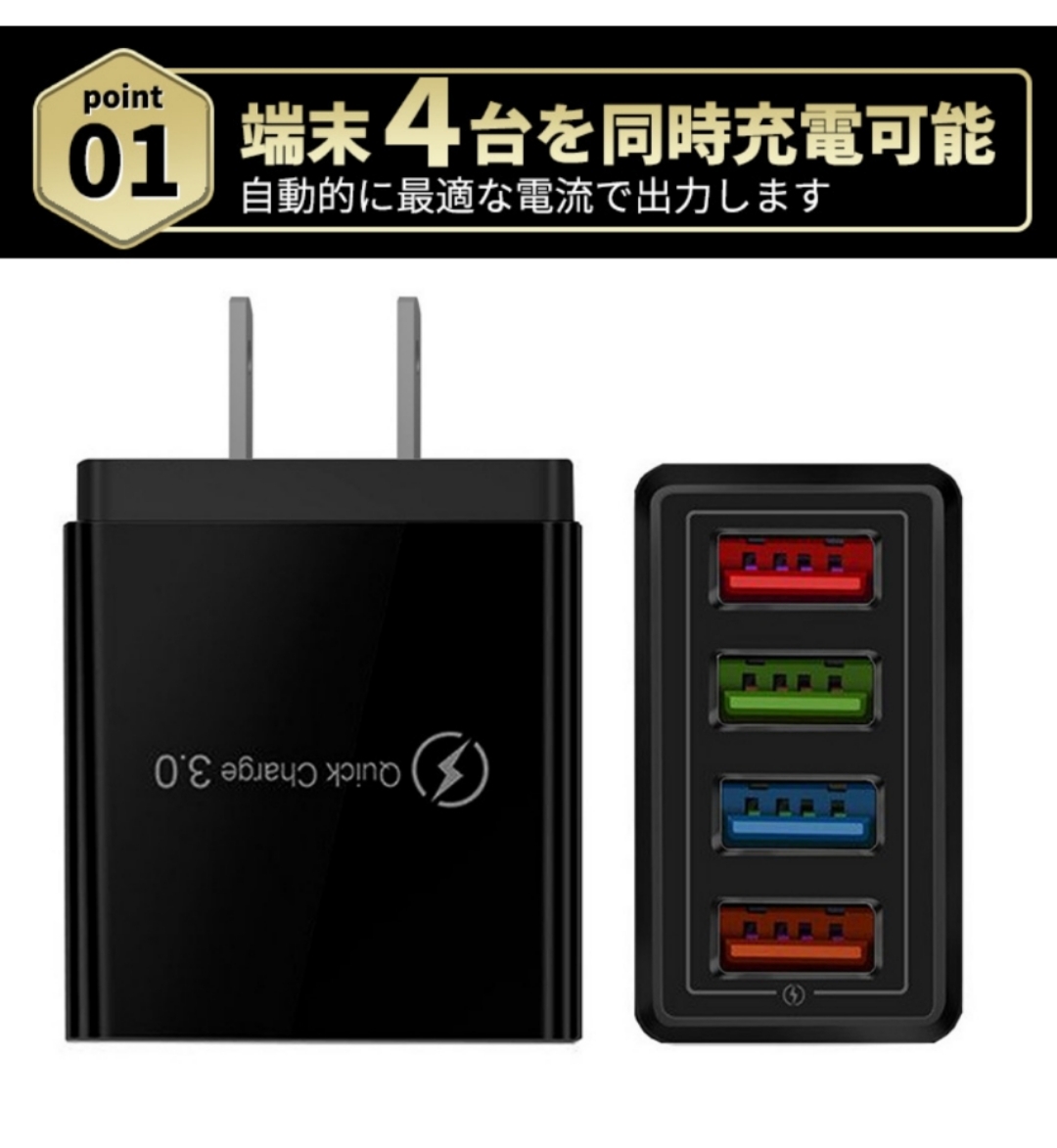USB 充電器 4ポート ACアダプター USB コンセント スマホ 充電器 携帯充電器 QC3.0 急速充電