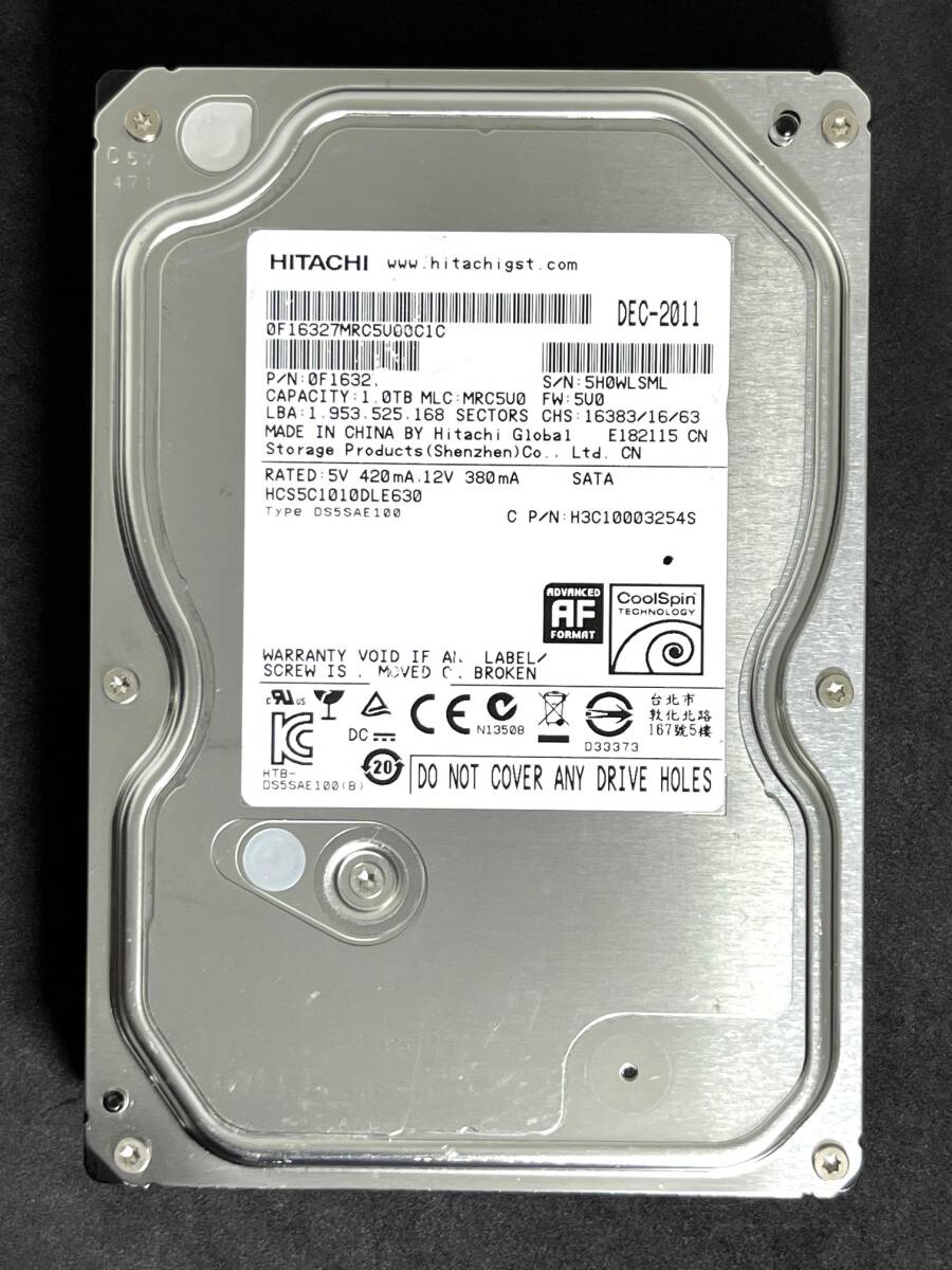 ★ 1TB ★ HITACHI / HCS5C1010DLE630 稼働少 【使用時間:1631h】 3.5インチ 内蔵 HDD SATA AVコマンド対応 HGST/日立 [管理■5BLS
