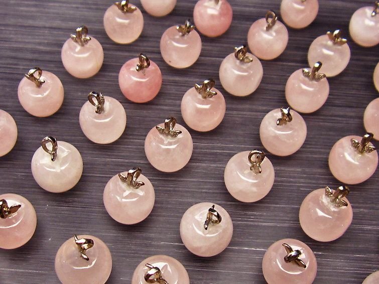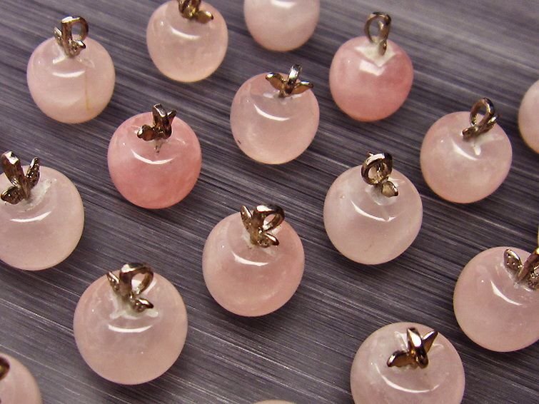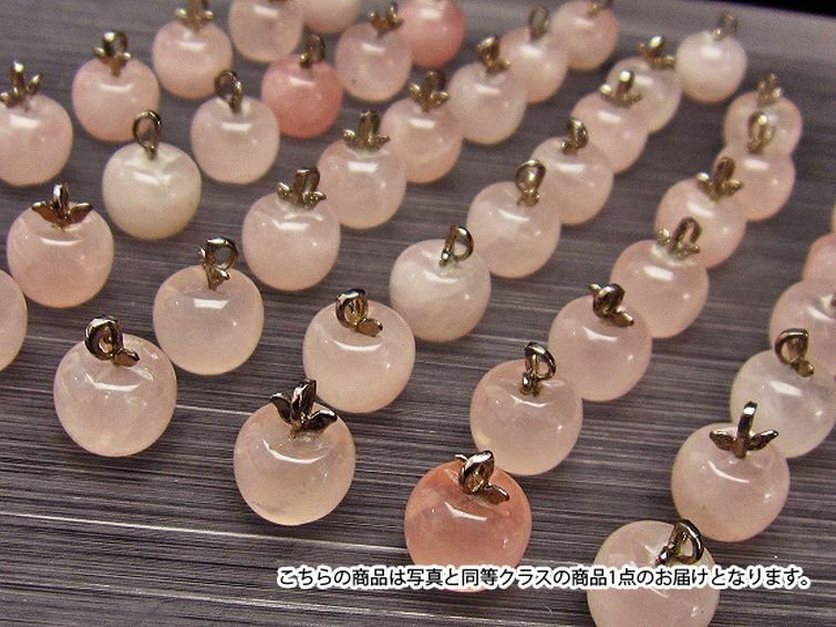 | ■商品名: ローズクォーツリンゴペンダント ■商品ID: T787-3 ■商品重量:約 2.8g ■商品サイズ: 高約:10mm 横約:12mm 厚約:12mm 【ローズクォーツ(紅石英)】 ローズクォーツは柔らかい優しいピンクの水晶です。アルミニウムや酸化チタンなどの結晶を含むためにピンク色になると考えられています。これらの微細な結晶が分散しているため、石全体の透明度が低く、濁っていたりひびがあります。高品質の透き通ったものや、スター効果が確認できるものは珍重されています。 この石は愛や優しさ、内面美を象徴する石です。ローズクォーツと言うと「恋愛運アップ!」といったイメージが一般的ではないでしょうか。 ローズクォーツは持ち主の内面の美を高め、女性の幸せや喜び、愛を呼び起こしてくれるとされています。また過去の傷ついた経験から、ついネガティブ思考になったり自分に対してマイナス思考になったりするような、負の感情を優しさで包み込み癒し、自分を許し愛せるようになるそうです。 この石は目当ての異性を連れてくるというよりは、内面的に美しくなり自分を良い意味で大切にする自己愛を知ることにより他者から愛されるという効果のようです。例えば自分なんか大嫌い、自分なんかどうせ、と思っている時に、他人から愛されるでしょうか。それよりも自分を認めて受け入れ、愛していると内面が輝いて魅力が溢れます。その魅力により周囲の人から愛され、他人から愛されることにより一層他人を愛せるようになるという、愛を呼び込む循環を造ってくれるそうです。 そういった意味で、実は恋愛運アップというよりはもっと定義の広い愛情運アップの効果があるとされています。 こういった広い意味での愛を得ることができるとされ、人に対して思いやりを持ち許せるようになることから、人間関係の改善や、苦手だけれどどうしても付き合わなければならない人がいるといった場合でも活躍してくれることでしょう。 【水晶(石英、クリスタルクォーツ)】 水晶とは石英を指しますが、一般的に無色透明のものをクリアクォーツやロッククリスタルと呼んでいます。 水のように美しく透き通ったものが良いと思われがちですが、内部にヒビや他の鉱物などのインクルージョン(内包物)が入っているものがあり、それが天然物の証。また、インクルージョンによって様々な種類に分類され、それぞれ違った印象を与えてくれます。 古くから呪い事に使われてきた水晶に秘められたパワーはとても万能で、あらゆる場面に対応するといわれています。特に邪気を祓う力が強いため、人間関係を円滑にしたり、心身をクリアな状態にしたい場合に最適です。また空間を浄化する作用もあるとされ、インテリアとしても高い人気を誇っています。 石自体に強い自浄作用があり、他のパワーストーンが吸収した負のエネルギーを浄化するといわれています。更にアクセサリーとして他の石と組み合わせる場合、それぞれの石の個性を引き出しバランスを取ってくれる効果があるそうなので、ぜひとも組み込んでおきたいですね。 パワーストーン入門に最適な水晶ですが、愛好家にとってはかなり奥が深く最後に行き着くのもこの石なんだそうです。何もかもを見透かすような透明な水晶には、本当に神秘的なパワーが宿っているのかもしれません。 |