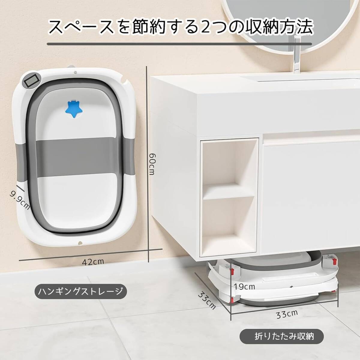 「折りたたみ可能な二重設計」アップグレードされた当社のベビーバスは、わずか2つのステップで厚さが10cm未満に簡単に折り畳むことができます。さらに折りたたむことも可能で、どんな角にも収納しやすく、スペースを節約する解決策です。