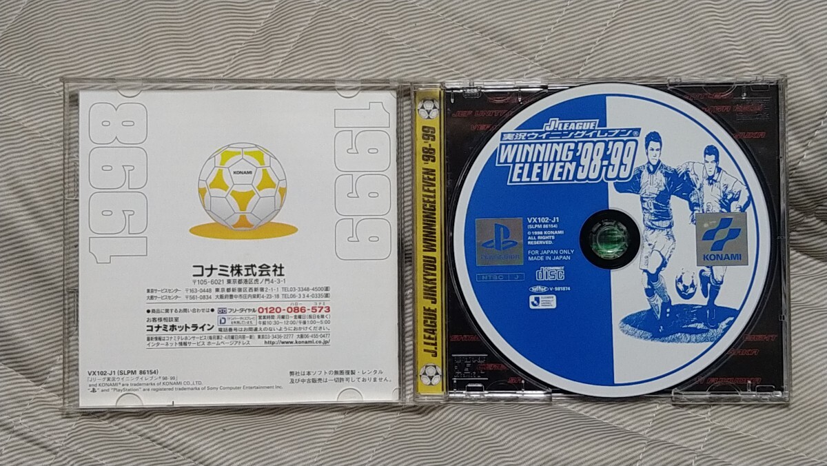 プレイステーション用ゲームソフト「Jリーグ実況ウイニングイレブン '98-'99」です。