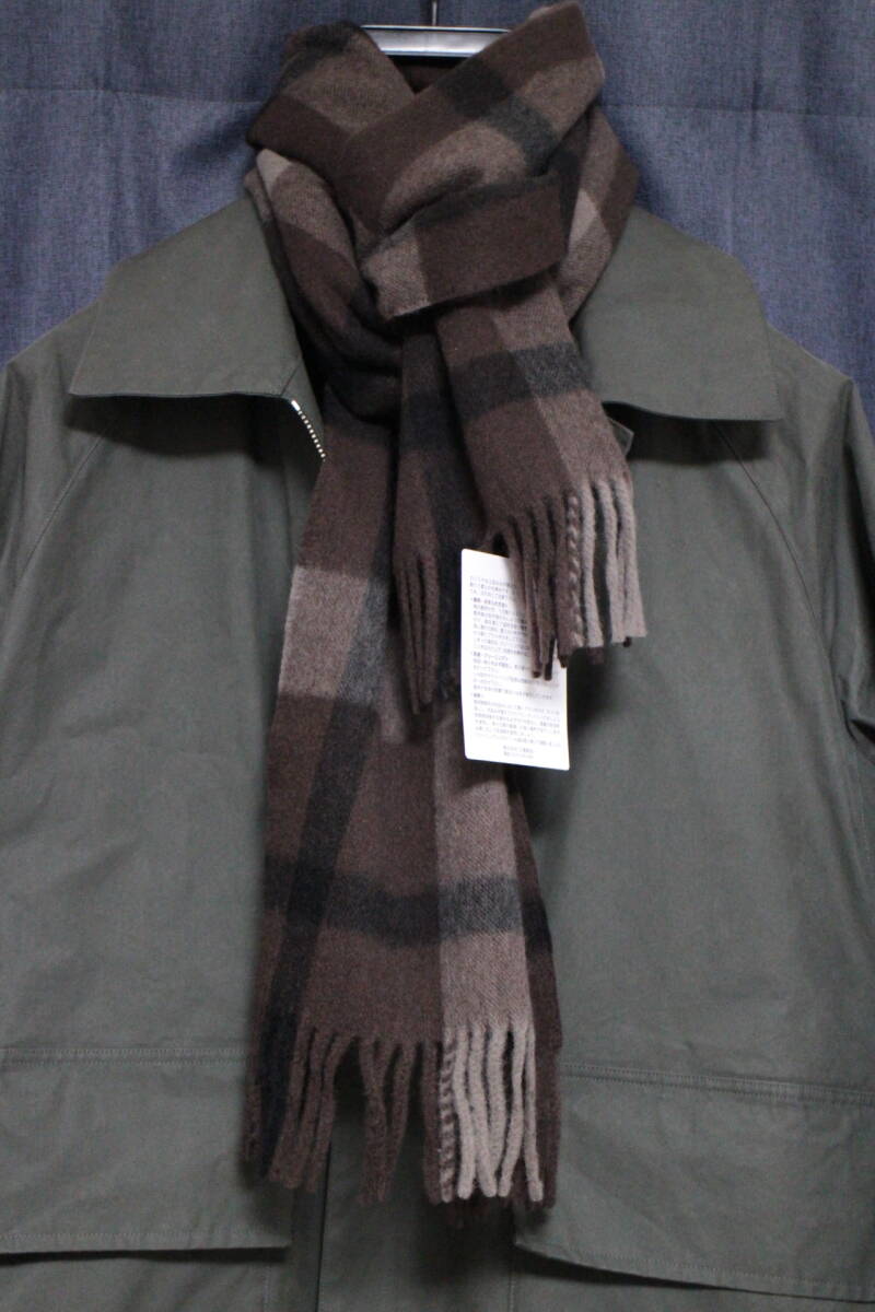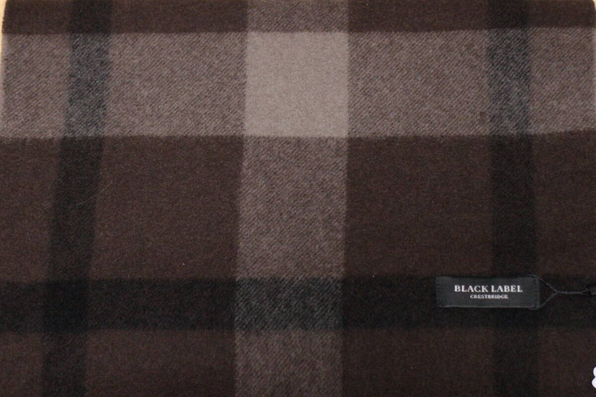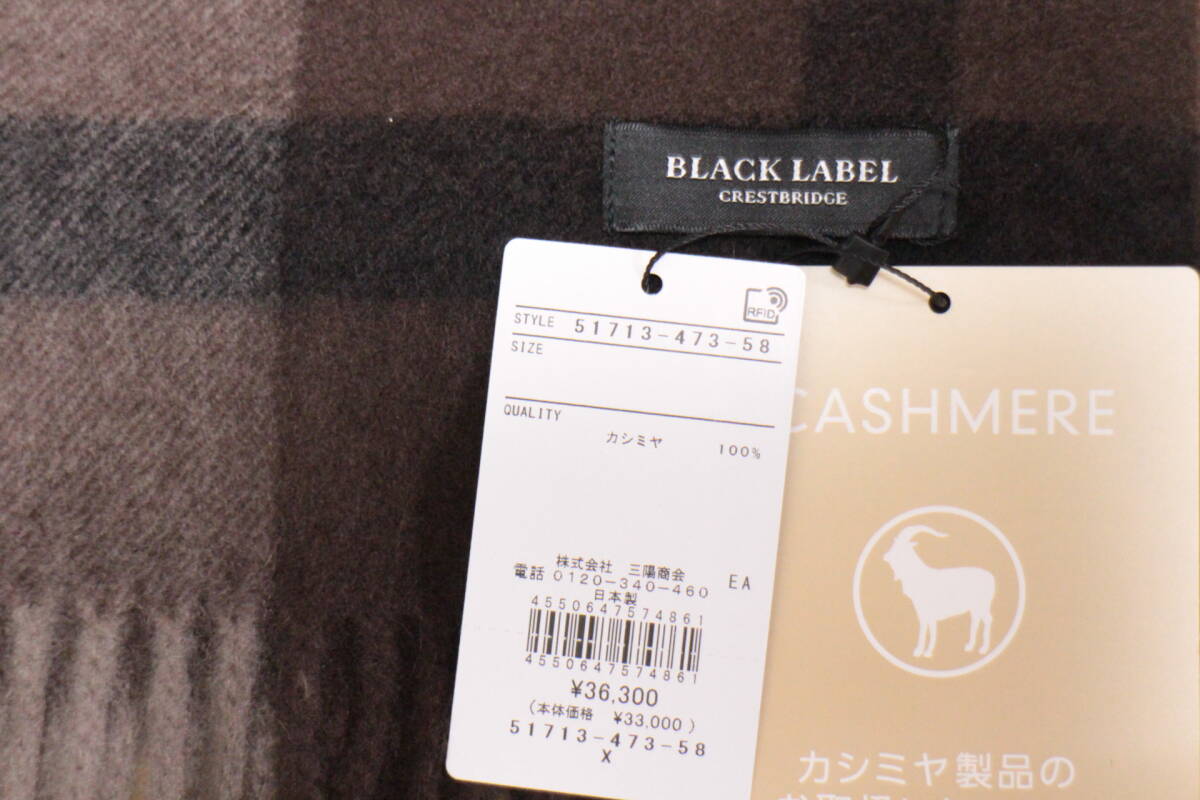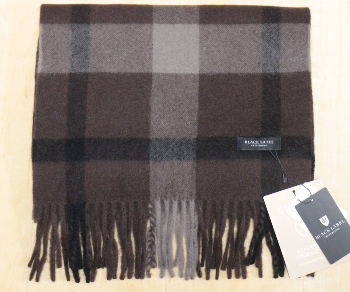 ブラックレーベルクレストブリッジ新品マフラーブラウン*アッシュブラウンチェック極上内モンゴル産カシミヤ高級尾州毛織日本製