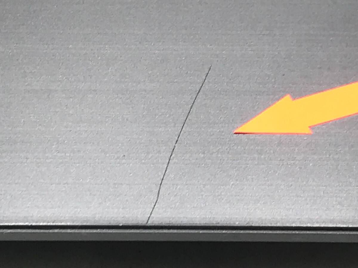 【外観:本体】てかり/ヒンジカバーの浮き/シール痕