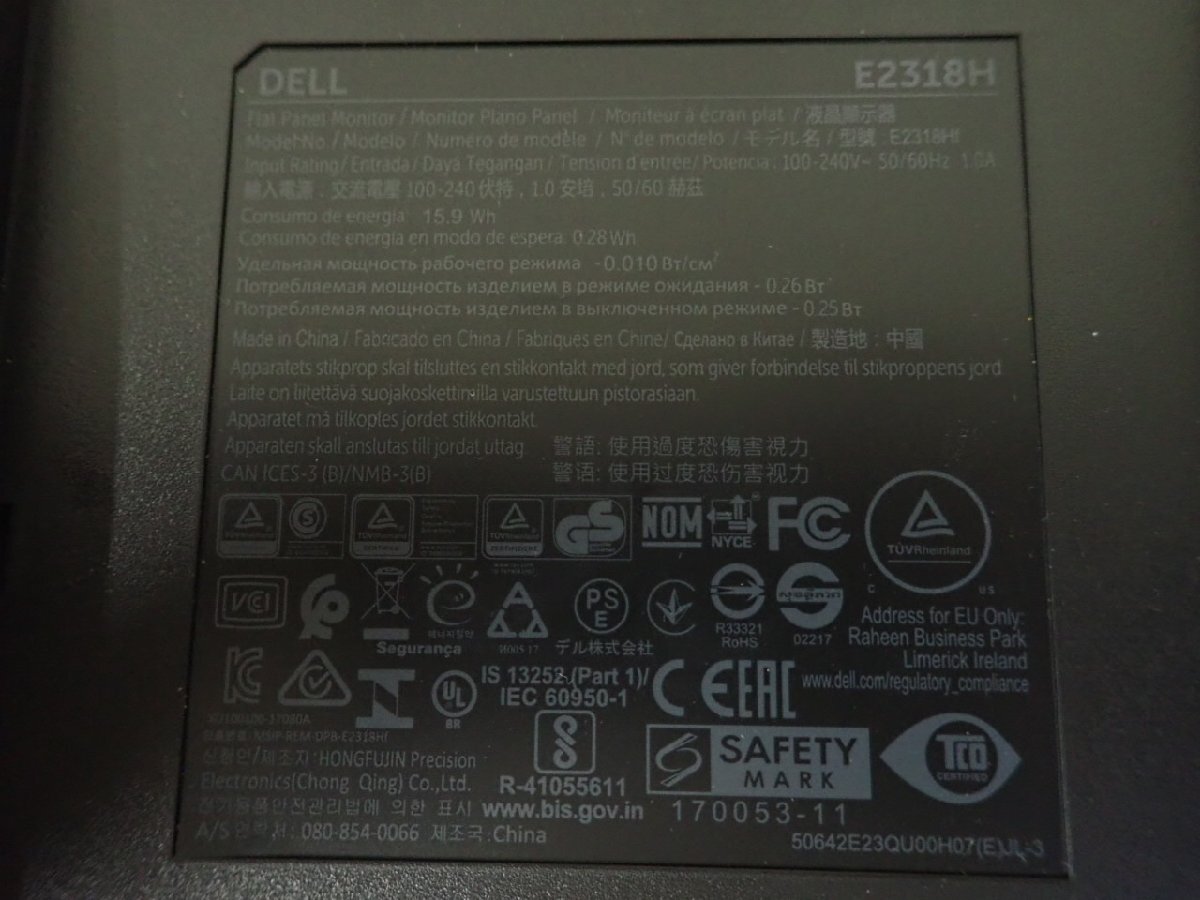 DELL E2318H 23インチ 液晶モニター フルHD 動作確認済 電源ケーブル・DPケーブル付 DisplayPort VGA 2019年製 (@1476)