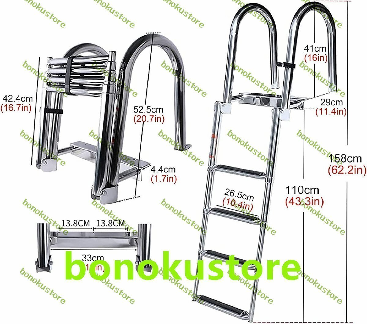 ボートラダー ボート用 梯子 望遠鏡の海洋の低下のボートの梯子に 船内手すり付き伸縮式4ステップボートラダー 搭乗ボートプールラダー 滑り止めステップ ステンレス鋼 スイムプールラダー