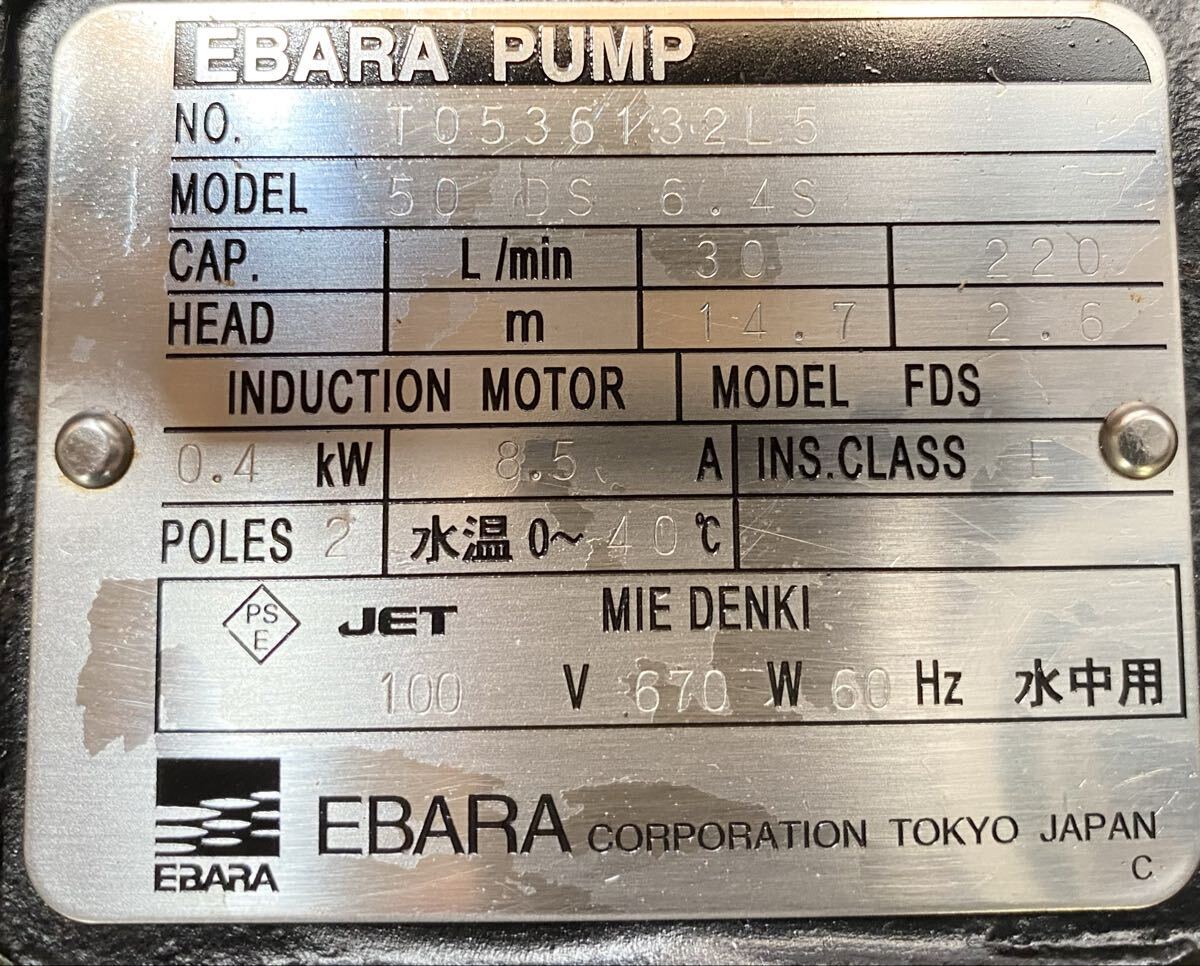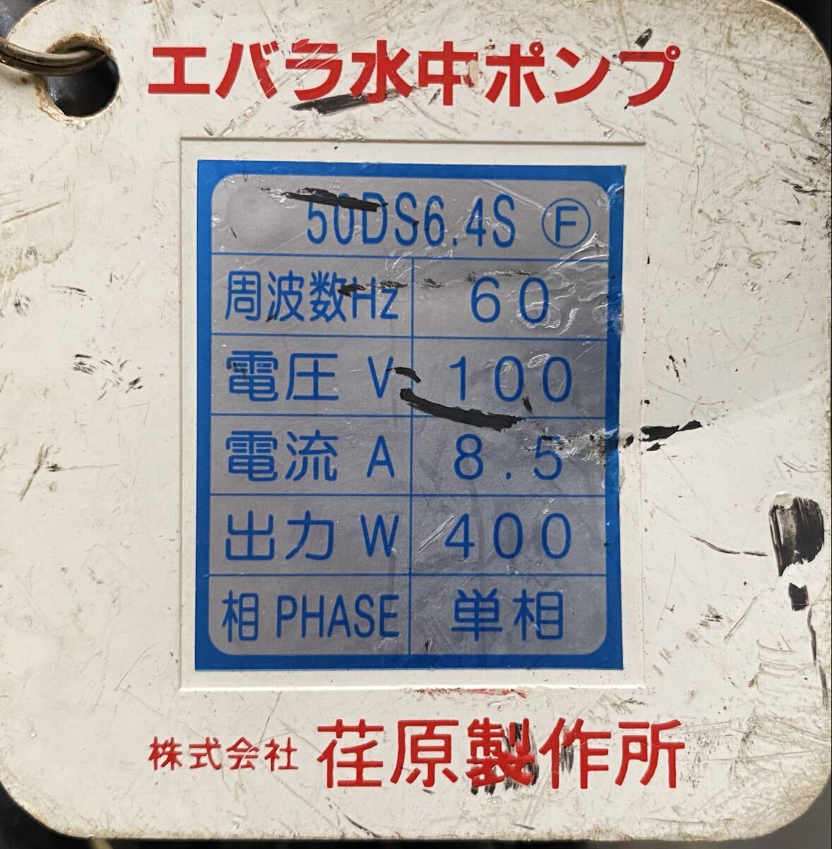 エバラ 50DS6.4S DS型 汚水水中ポンプ 60Hz 100V 動作確認