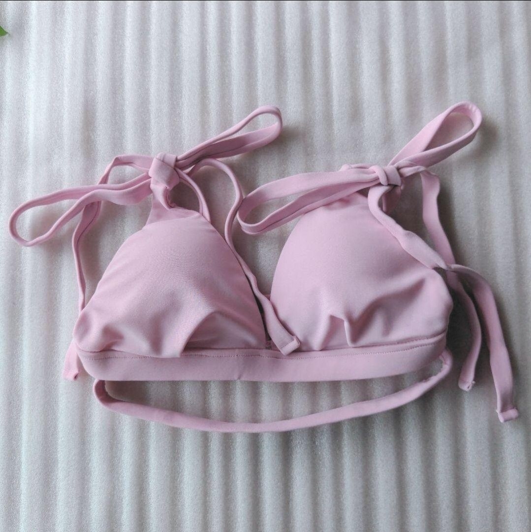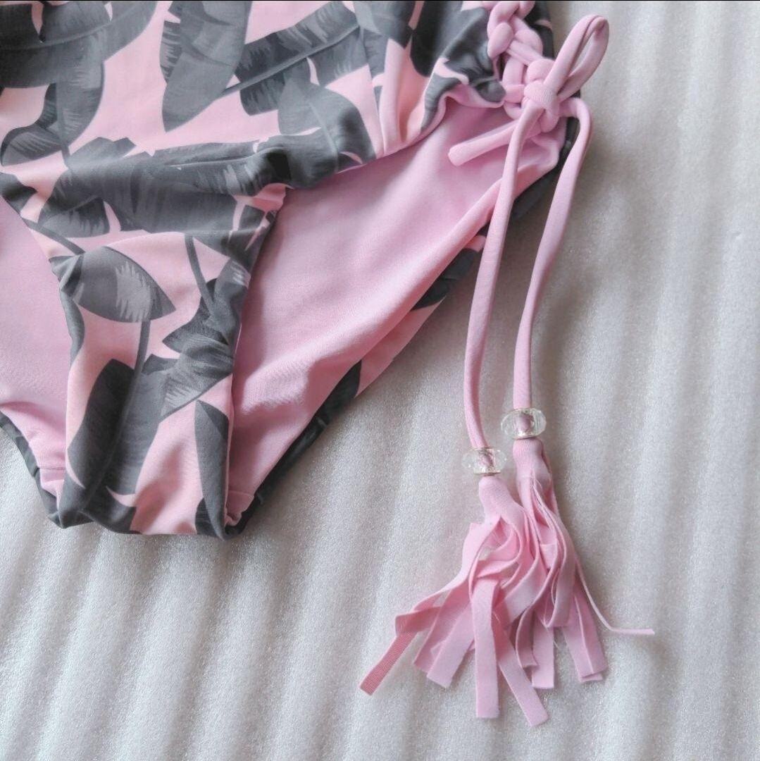 水着 レディース ビキニ ピンク セパレート M ボタニカル 編み上げ シンプル