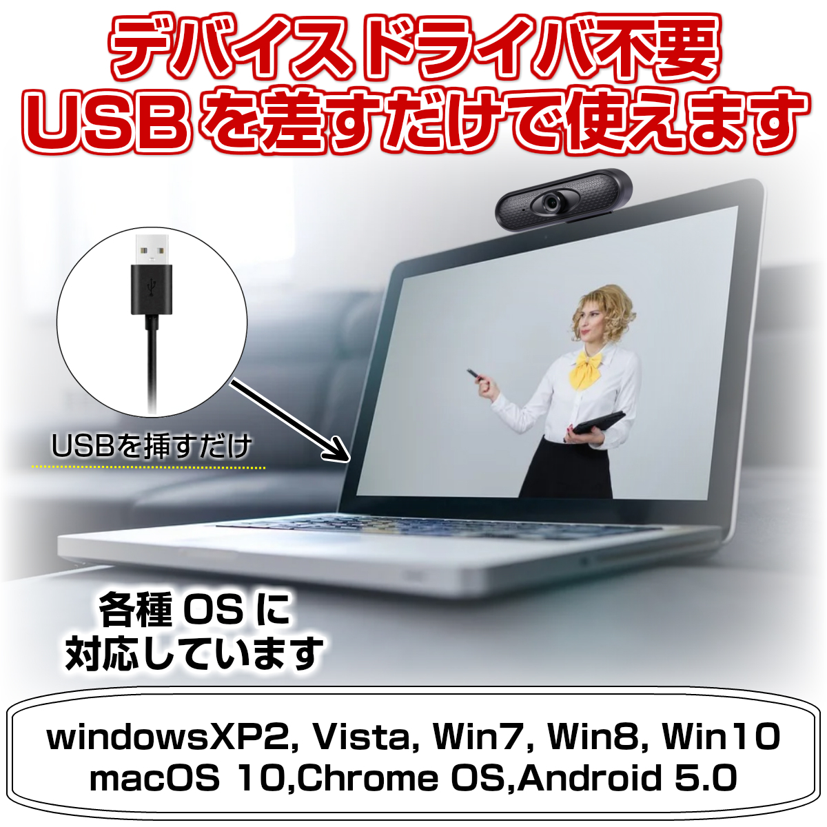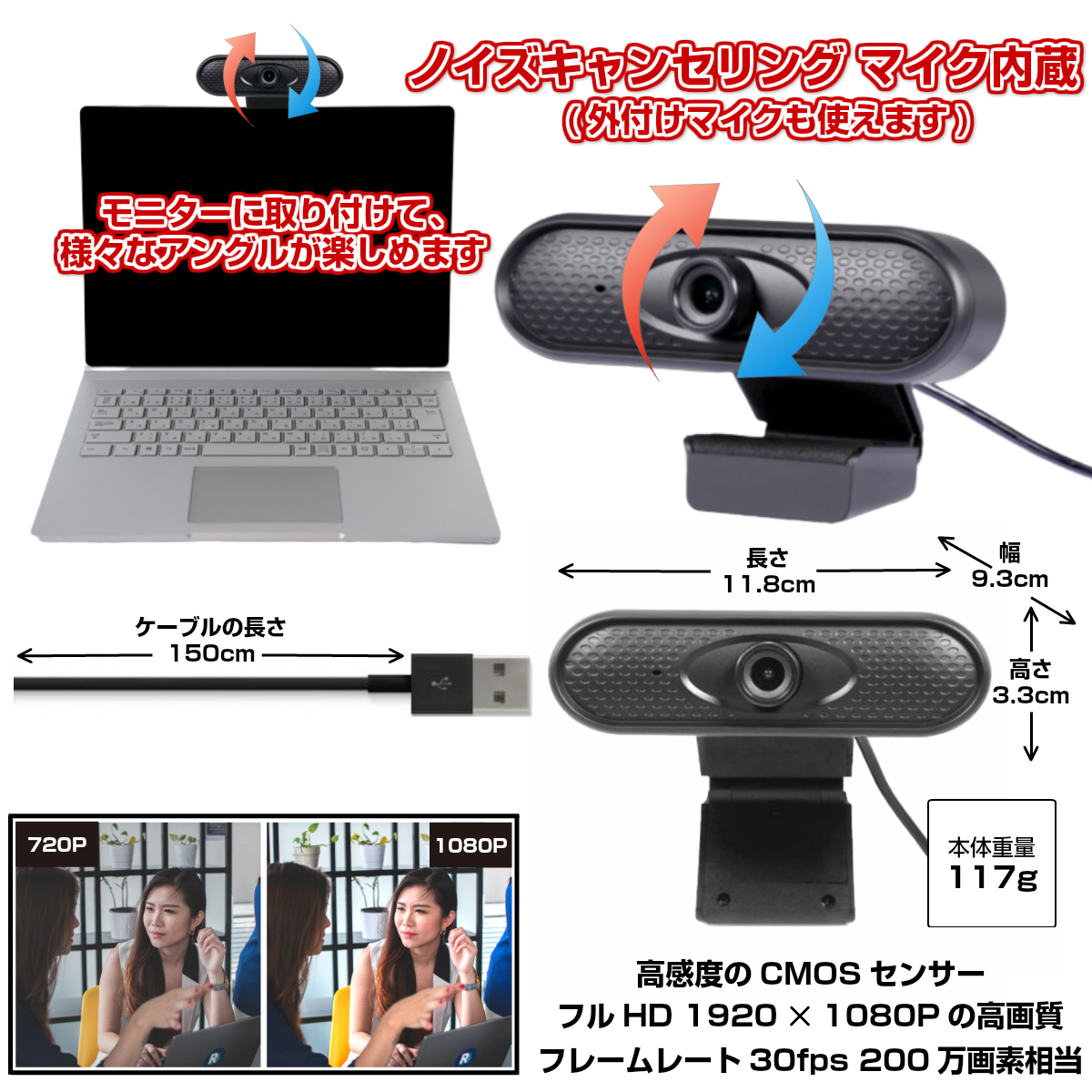 ウェブカメラ 200万画素 マイク内蔵 外付け パソコン カメラ zoom オンライン会議 リモート 在宅 FullHD 1080P USB 広角レンズ