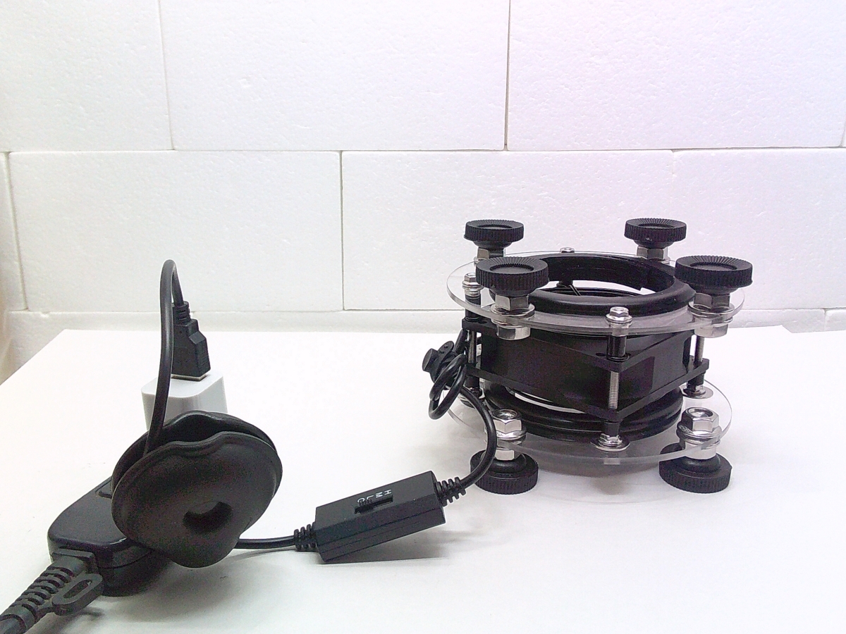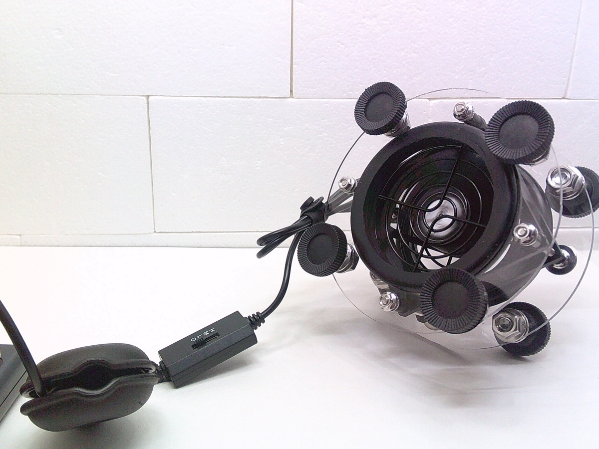 USB冷却ファンの両側に金属製ファンガードが装着済み、指が入らず、