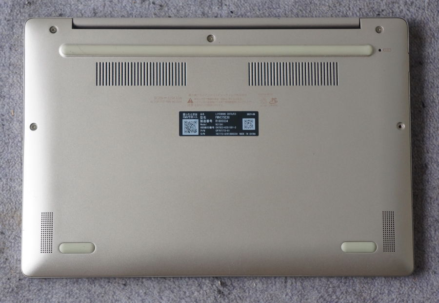 | ★商品説明★ | ■主な仕様 ・メーカ-:富士通・FUJITSU ・機種名:CH75/E3(ベージュゴールド) ・OS:Windows 11 Pro 64bit ・CPU:i5-1135G7 @2.40GHz ・メモリ:8GB ・HDD:SSD512GB ・ドライブ:ドライブレス仕様 ・液晶:13.3インチ解像度:Fhd1920x1080 ・officeソフト:Microsoft Office 2021 Pro ・無線LAN:あり ・Webカメラ:HD Webカメラ内蔵(有効画素数約92万画素) ・仕様等詳しくはこちらの富士通のサイトでご確認ください。 ■商品の状態 ・多少の使用感はございましてトップカバーのエッジ部分に小傷が若干ございますが特に目立つような傷はございません。 ・液晶パネルにキーボードの跡が若干ございます。 ■付属品 ・USB-CタイプACアダプター(社外品) |
