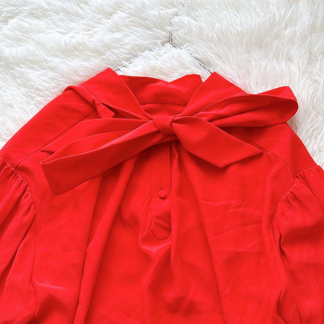 バレンシアガ BALENCIAGA ブラウス シャツ ボウタイ アシンメトリー レッド 赤 長袖 リボンタイ デザインシャツ ドレープ モード エレガント 高級感 レディース 正規品
