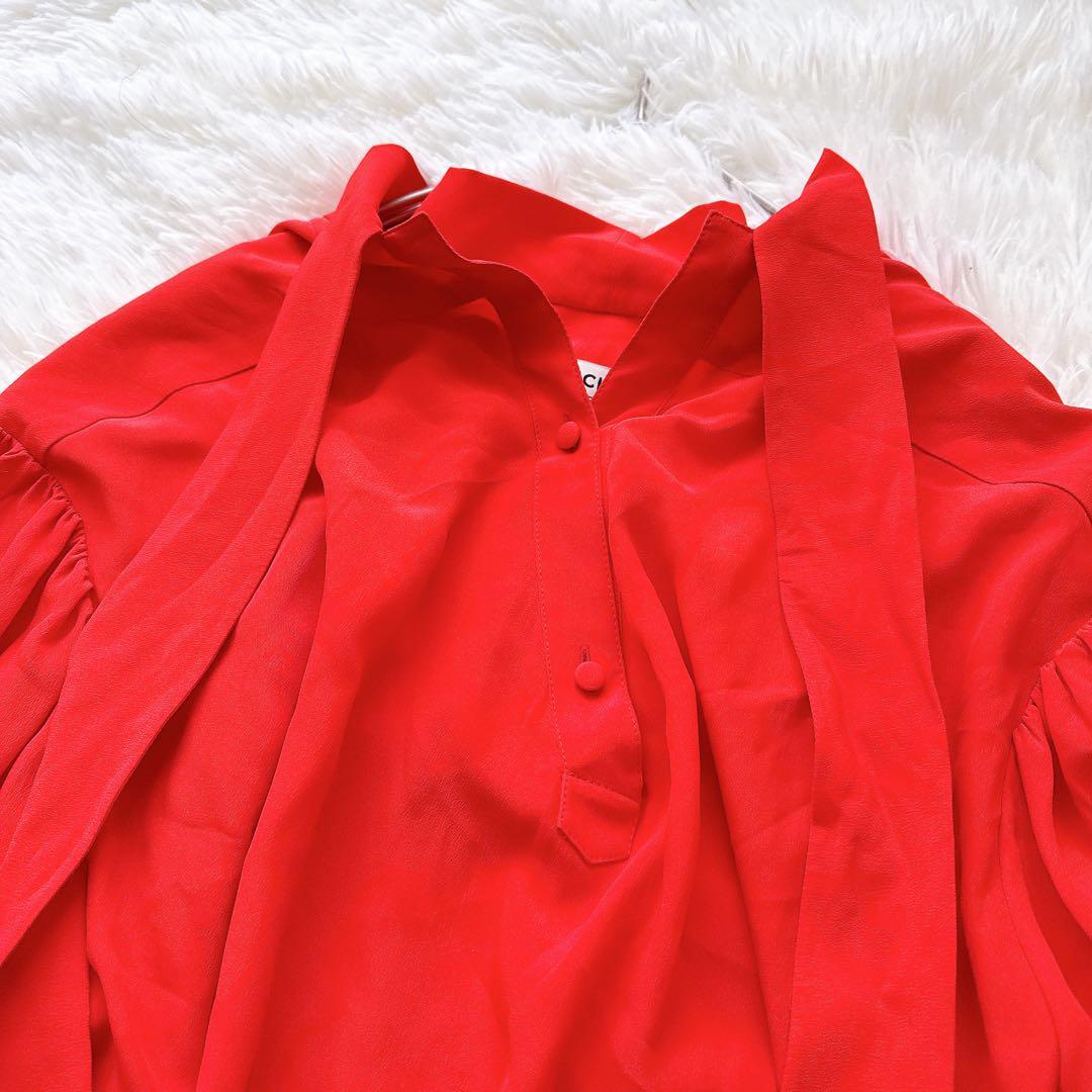 BALENCIAGA バレンシアガ ボウタイブラウス シャツ アシンメトリーデザイン 赤 絹 デザインシャツ ドレープ モード エレガント