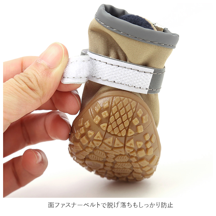 | 商品説明 | ・デリケートなワンちゃんの足元をしっかりガード!スタイリッシュなドッグ用シューズが新登場。 ・冬の乾燥時期や夏の焼けたアスファルトの上を歩く毎日のお散歩・・・。ワンちゃんの肉球は傷つきやすくてとっても繊細。そんなワンちゃんの足元を守ってくれる、ありそうでなかったワンちゃん用シューズ。 ・シューズ履き口のファスナーが大きく開いて装着しやすく、面ファスナーベルトでグルっと留めれば、脱げ落ちもしっかりと防止。 ・靴底は程よい弾力のあるゴム素材を使用し、つま先の水濡れや汚れ、路面を歩く時のキズから肉球をガード。 ・足裏には滑り止めの溝がしっかりと刻まれているため、雨の日のお散歩も安心。フローリングの床でもツルツルと滑らず、爪による床のキズも防いで一石二鳥。 ・生地の種類は、蒸し暑い時期のお散歩も快適なメッシュタイプと、水滴をサッとはじくはっ水タイプの2タイプ。どちらのタイプもキラリと光る反射材ベルト付きで夜のお散歩も安心。(※はっ水タイプのカラーは、ブラウンとブラック2色のみのお取り扱いとなります。) ・愛犬の足に合わせてピッタリサイズが選べる5サイズ展開。 |