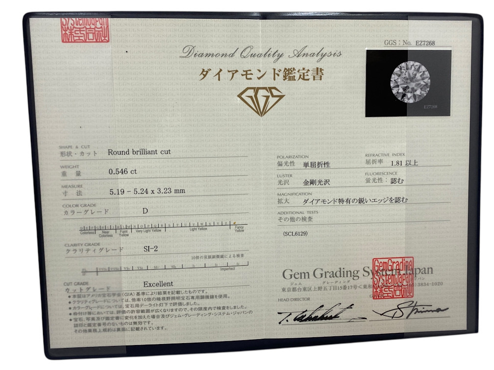 付属品…ケース、ダイヤモンド鑑定書(Gem Grading System Japan)