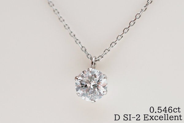 鑑定書付◎エクセレント&Dカラー!プラチナ Pt ダイヤモンド0.546ctネックレス D/SI-2/EX 一粒ダイヤネックレス プラチナダイヤ