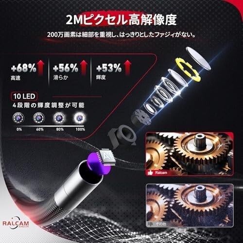 ??【8.5mm極細いスネークカメラ】内視鏡は先端部で8.5mm極細いスネークカメラを搭載により、錆びず、耐摩耗性などのステンレス鋼が持つ利点だけでなく、柔軟で曲げやすいという利点もあります。先端可動式内視鏡検査カメラは1080 HD 4.5インチの大画面を採用し、ビデオレンジ検査カメラは1920 x 1080 Pピクセル(1080 P)のリアルタイムビデオと写真を撮影することができる。また、スネークカメラの先端には輝度調整可能な高輝度LEDライトが搭載されており、暗い場所でも鮮明な映像を映します。