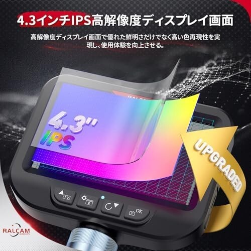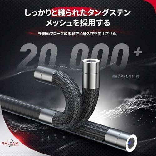 【送料無料】Ralcam先端可動式ファイバースコープ 8.5mm極細いスコープカメラ 4.5インチIPS液晶モニター 1080P