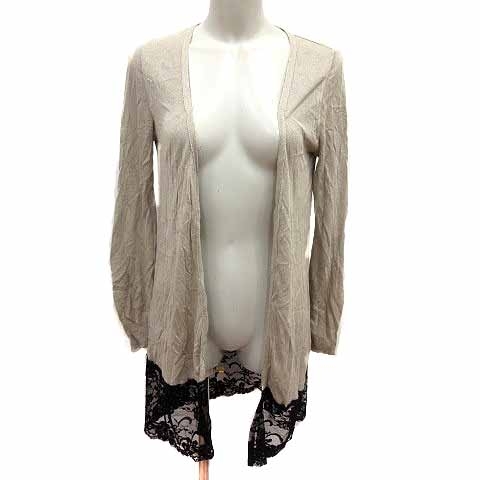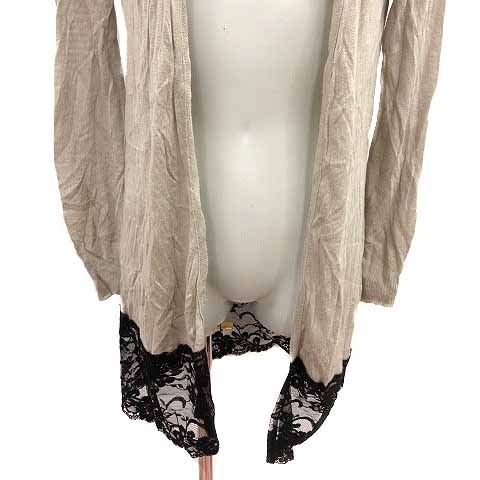 エポカ EPOCA THE SHOP ロングカーディガン ニット 前開き レース 長袖 M ベージュ /YK レディース