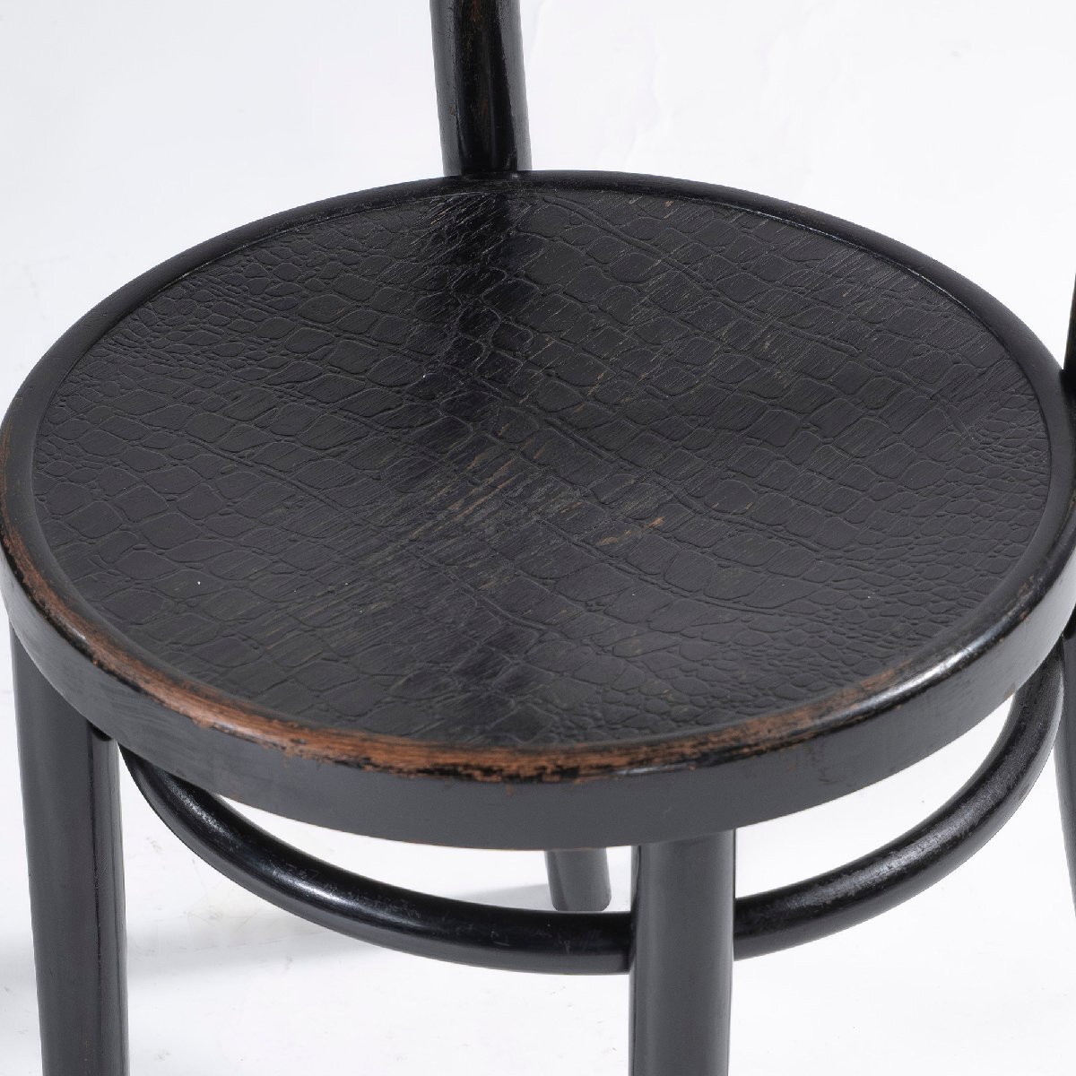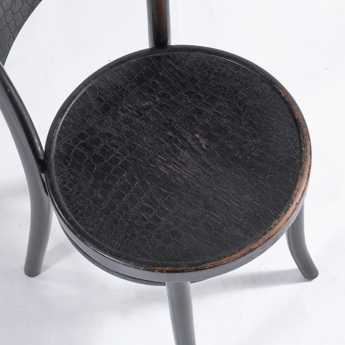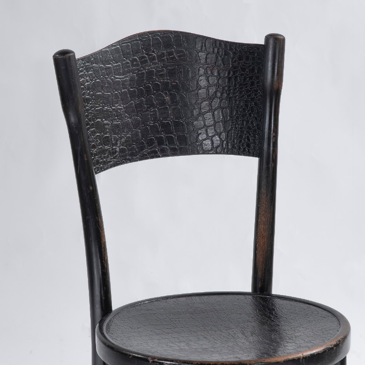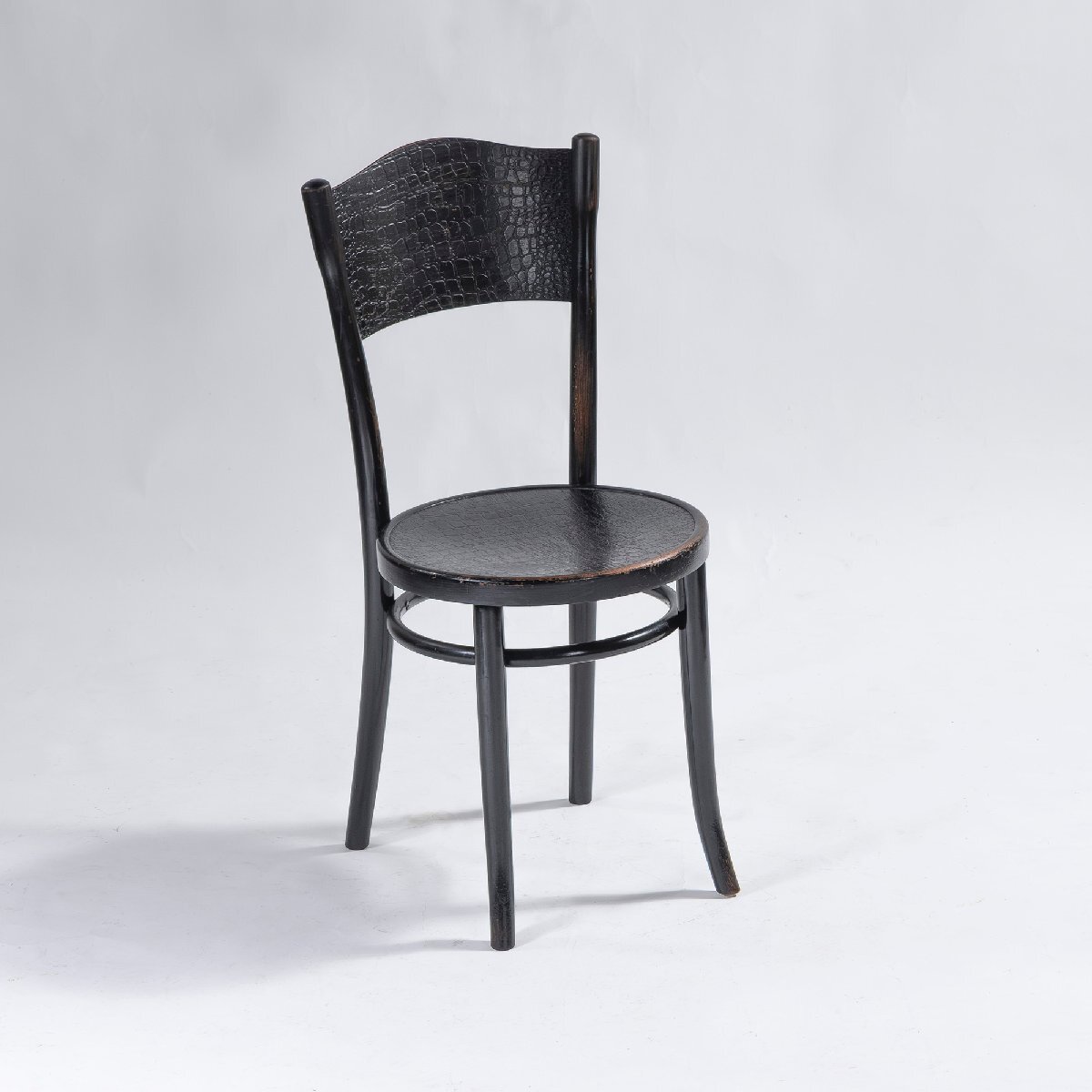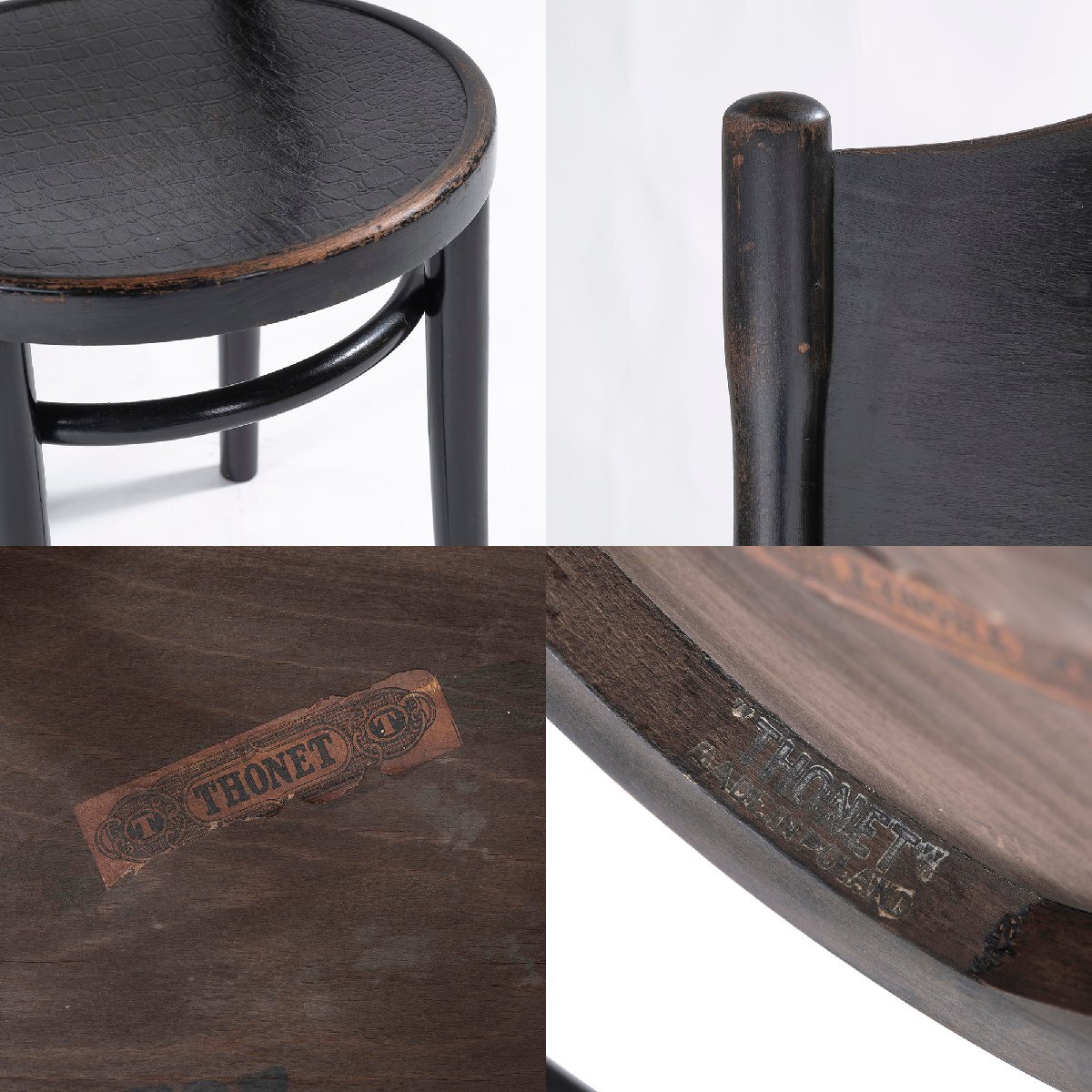 【商品名】 THONET クロコパネル ベントウッドチェア 1930s(2) 【サイズ】 幅/41cm 奥行き/48cm 高さ/89.5cm 座高/46.5cm 【コンディション】 ※クリーニング後、経年の雰囲気を損なわないように表面を磨き、オイルとワックスでメンテナンス済み。 ※しっかりと拭き上げは行っていますが、ご使用前に一度乾拭きをしていただけますと幸いです。 ※着座していないときガタつきがある場合がありますが、着座時にはガタつきを感じないように設計されているのでご安心ください。 ※塗装剥げ箇所はあるものの、アンティーク品として味わい深い雰囲気で気持ちよくお使いいただけるコンディションです。 ※商品は、写真のものが全てです。 ※画像は現物を撮影しておりますが、照度・モニター環境により実物と色味が異なる場合があります。 ※手作業による採寸のため、若干の誤差はご了承ください。 〇沖縄配送不可。 〇状態に関しましては、多少の見落としや表現出来ていない部分もあるかもしれません。 〇あくまでも中古品のため新品同様をお求めの方、神経質な方はご購入をお控えください。 〇気になる点やご質問等があれば、必ず購入する前にご質問よりお問い合わせください。 【商品説明】 曲木技術のパイオニア、200年以上の歴史を持つドイツの家具ブランドTHONET。 ベントウッドは軽くて丈夫、多様なデザインで大量生産が可能であったため、ヨーロッパのカフェやビストロに広く普及していきました。 今なお、ヨーロッパのビストロやカフェで見かけることができる、世代を超えた名作として人気のチェアです。 こちらは推定1930年代製造、背と座へクロコ革調の型押しパネルを合わせた個性派ベントウッドチェア。 なかなかヴィンテージ市場でも見かけることができないレアアイテムです。 幾度かのレストアはされているようで、時代を超えて愛されてきた雰囲気が非常に伝わってきます。 弊社ではクリーニング→オイルメンテナンス→仕上げのワックス掛けを行い、味わいを損なわないようにメンテナンスいたしました。 ダイニングチェアとしてはもちろんですが、お部屋の一角に設置するだけで空間に彩を与えます。 本物のアンティークの味わいをぜひご堪能ください。 | |