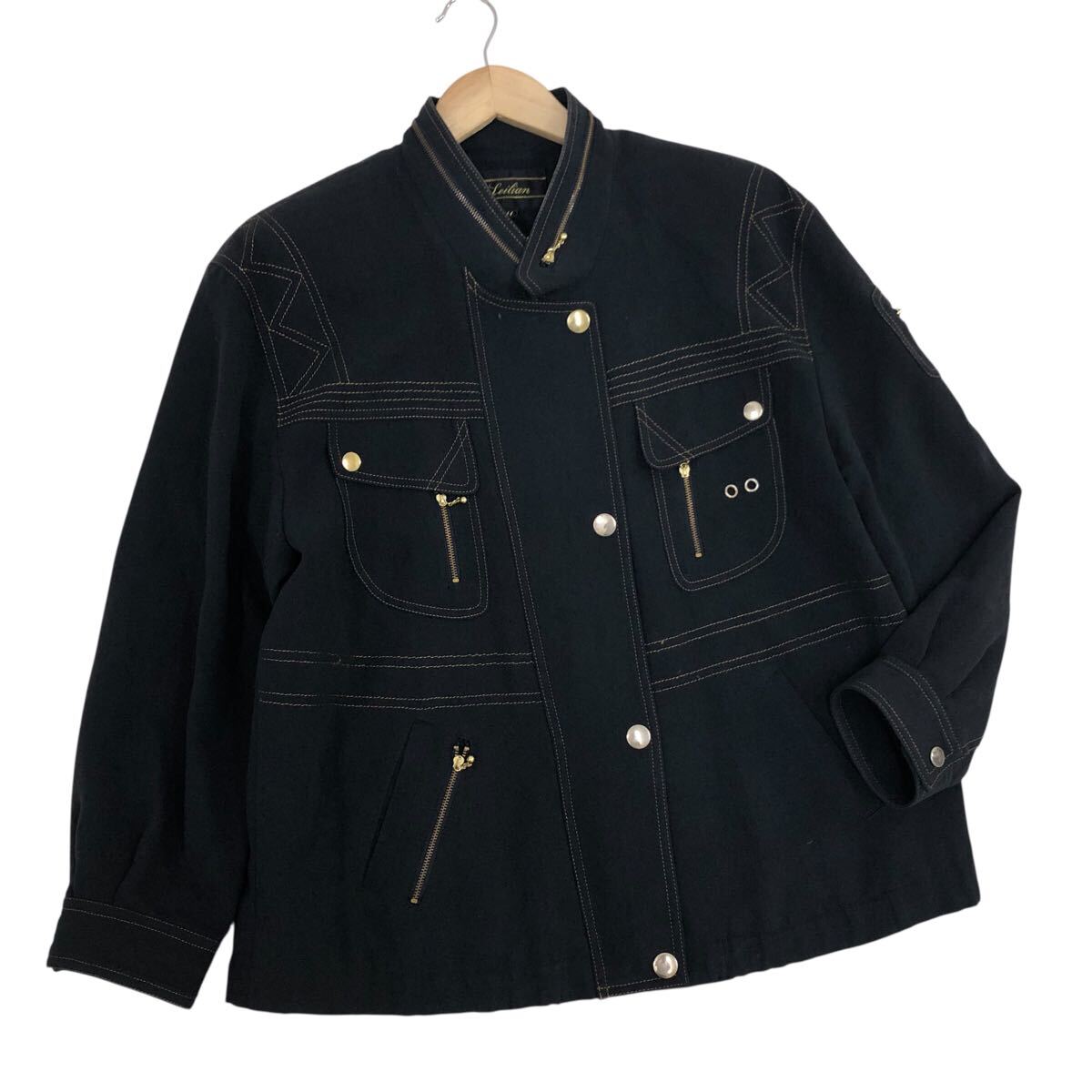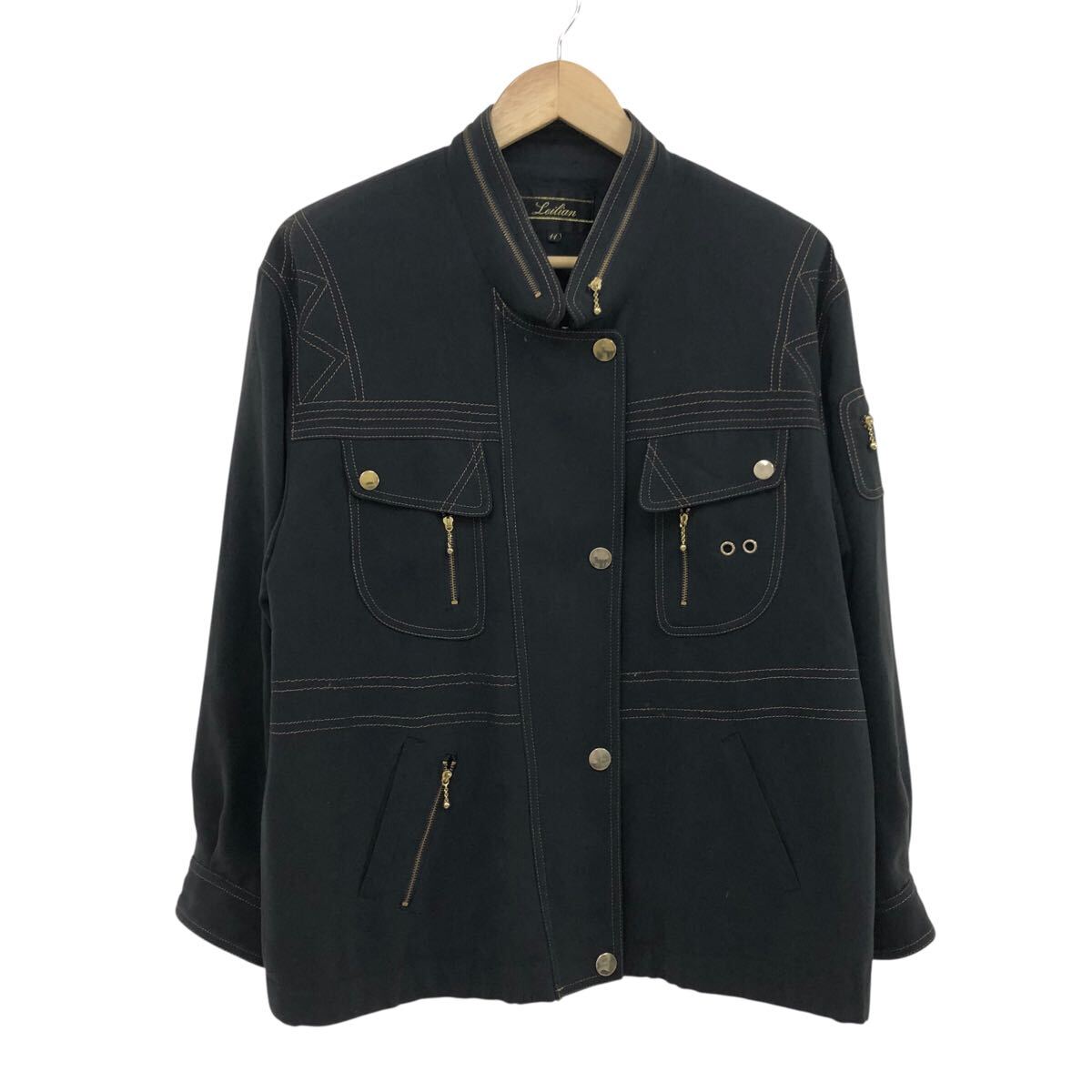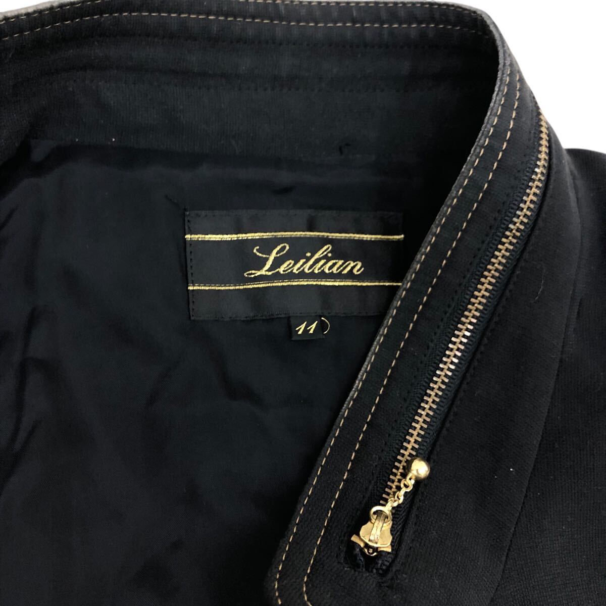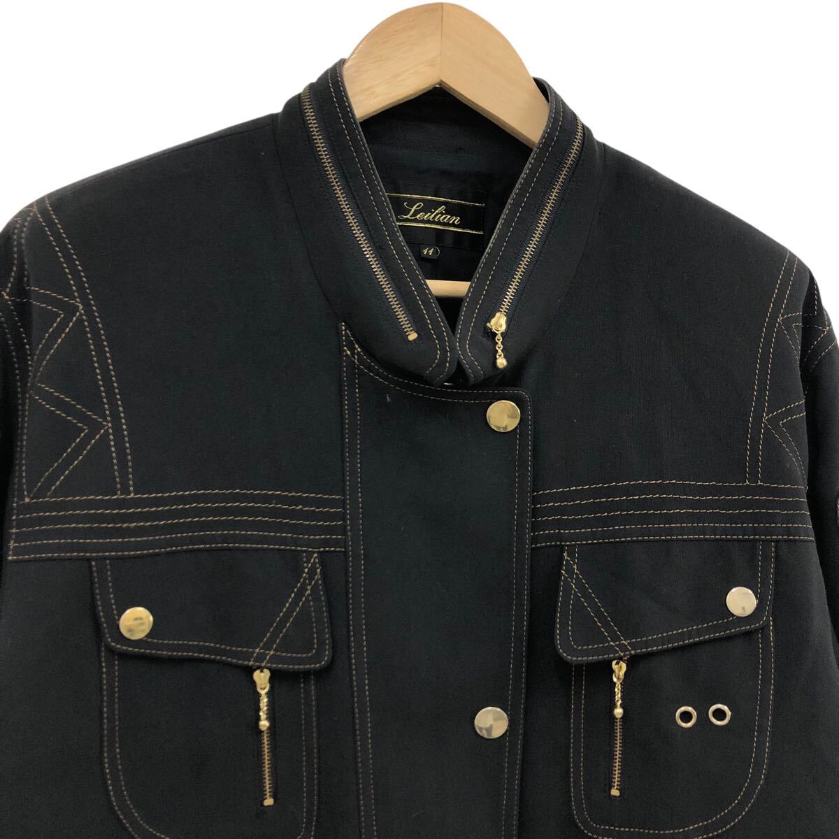 10m664-6 Leilian レリアン ステッチ デザイン スタンドカラー ブルゾン ジャケット 上着 羽織り アウター ブラック レディース 11 日本製