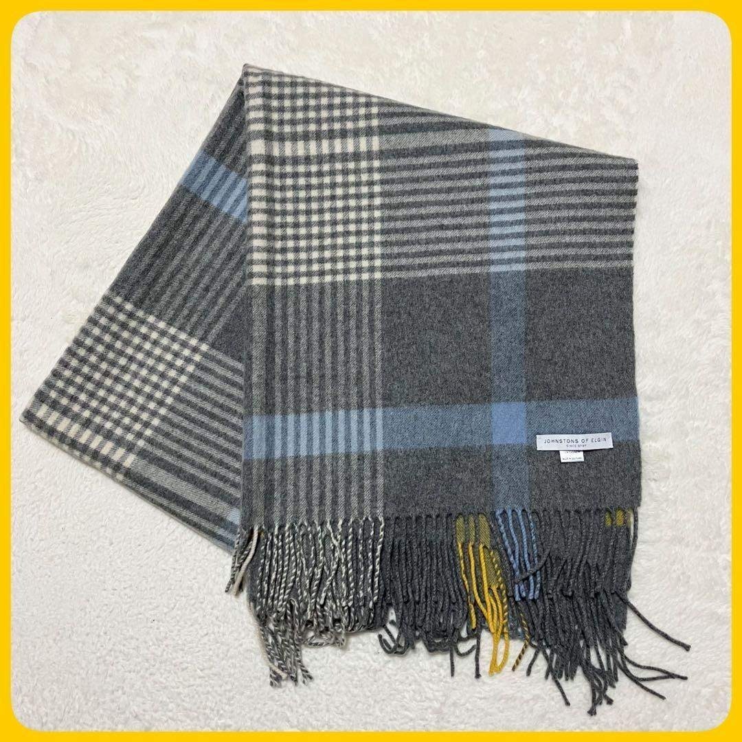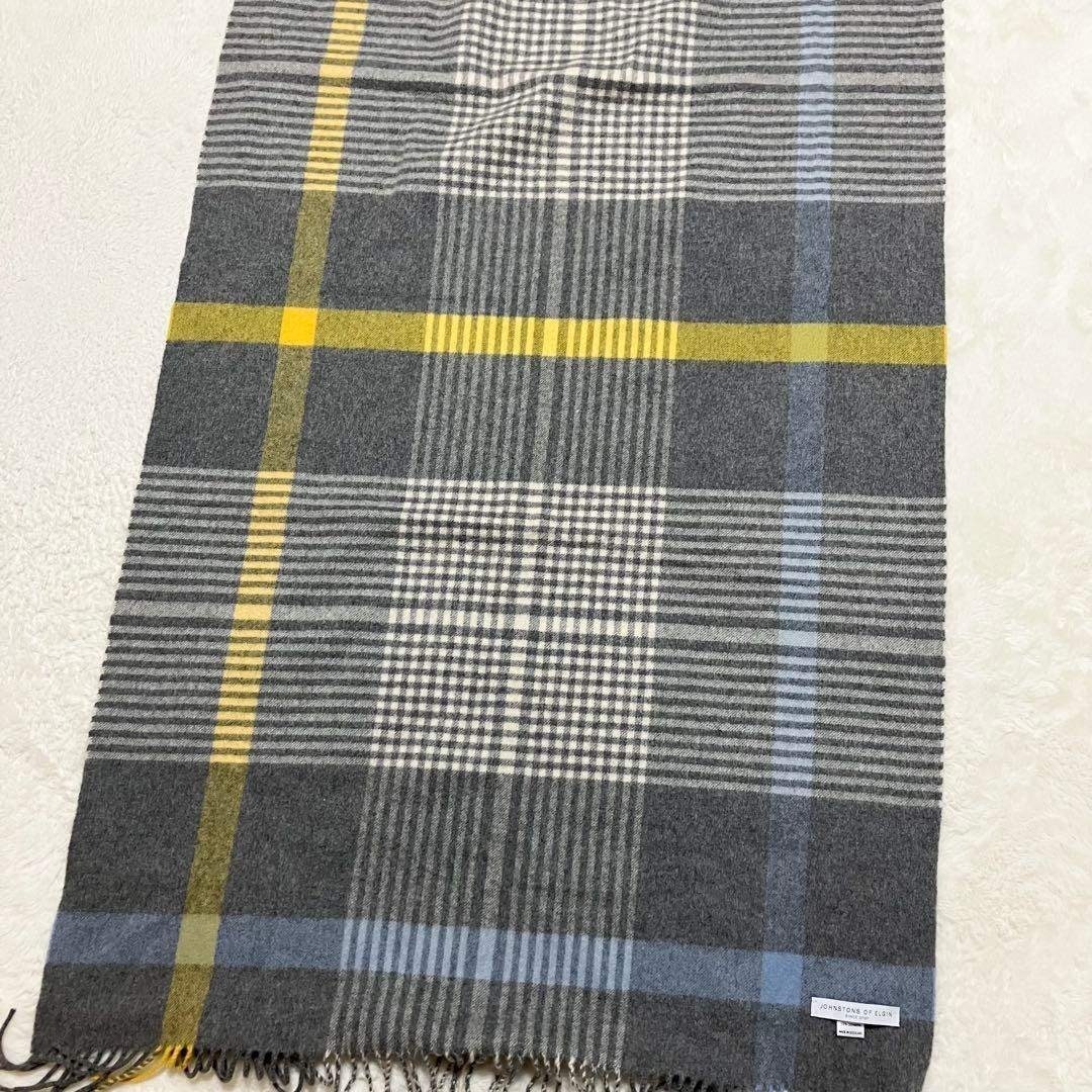 極美品 ジョンストンズオブエルガン カシミヤ100% 大判 ストール チェック