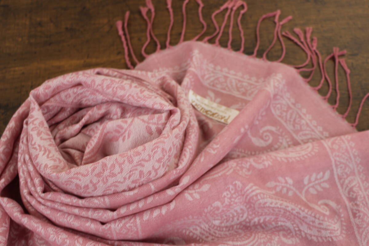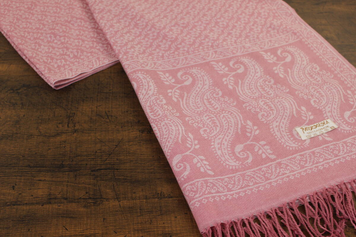 新品【パシュミナ Pashmina】ペイズリー×小花柄 ライトピンク L.PINK 大判 ストール カシミア100% Cashmere