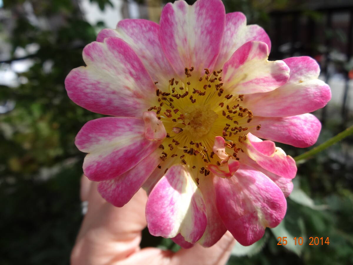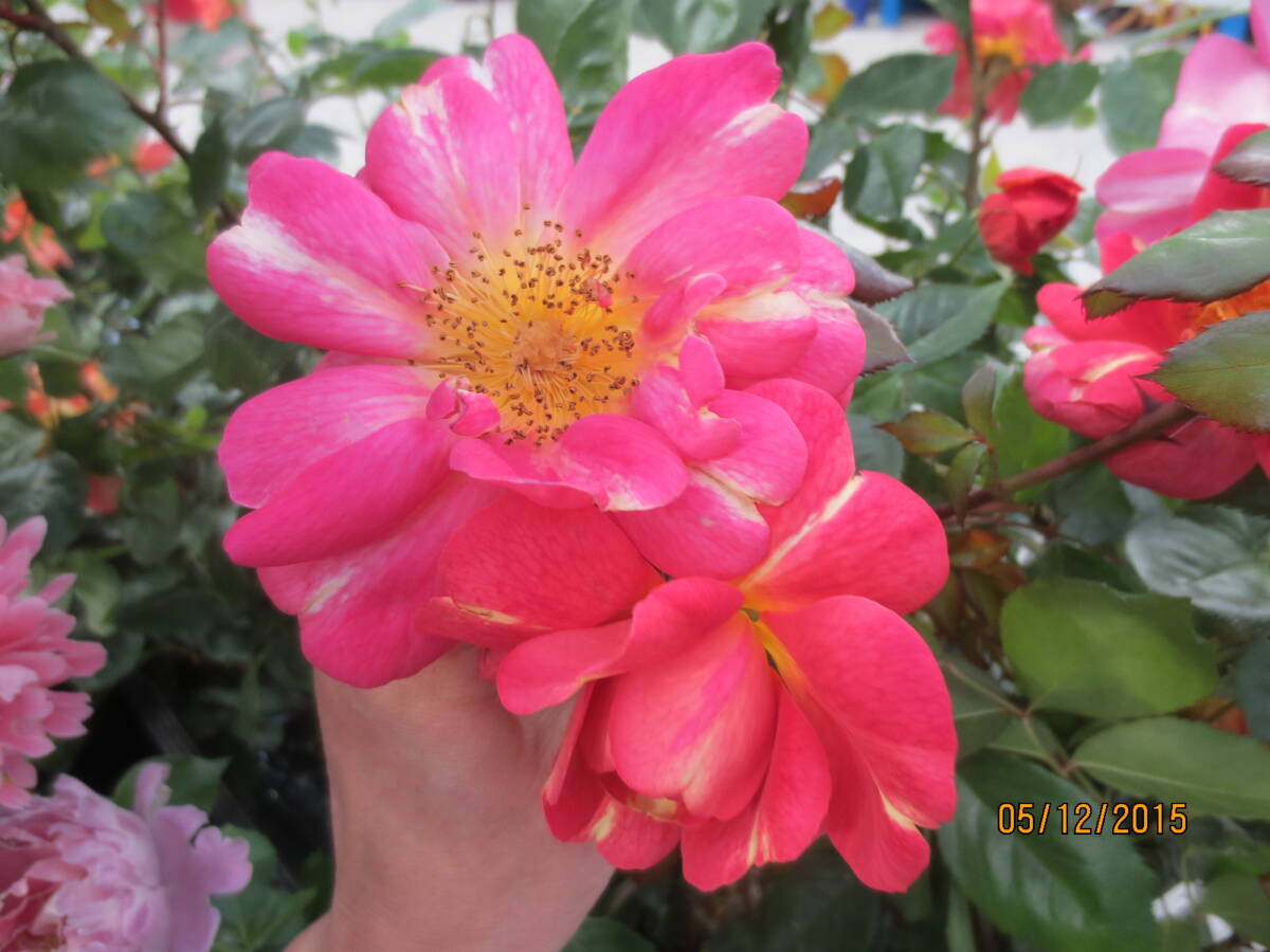 黄色いしべがアクセントになりとてもポップなイメージのバラ^^