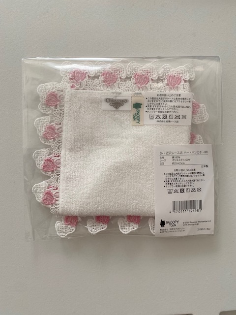 【新品】 近沢レース ★ スヌーピー ハートハンカチ ホワイト 白 ★ 近沢レース店 ハンカチ タオル