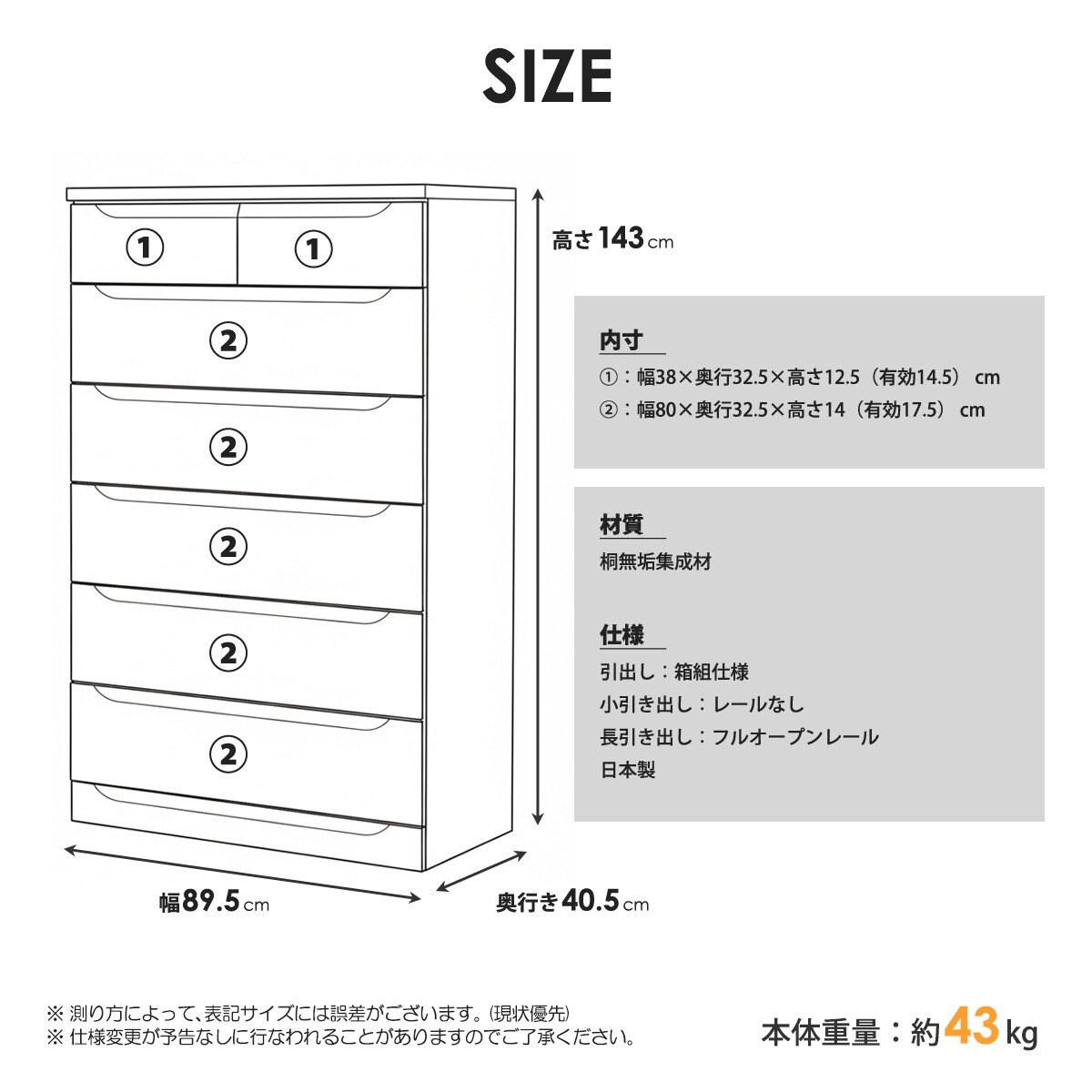 商品サイズ本体:幅89.5×奥行40.5×高さ143cm