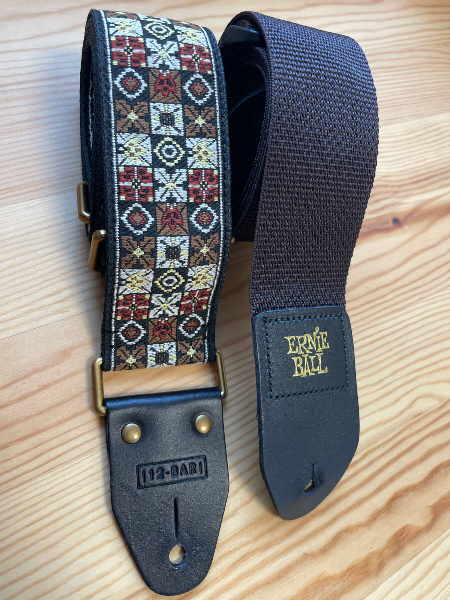 オーストラリアでハンドメイドされている12barguitarストラップとアーニーボールのポリプロストラップ2本セット中古品です。使用頻度は低かったためホールのダメージは少なく、まだ十分使用できます。アーニーボールのポリプロストラップの仕様は割愛しますが、12barguitarストラップの仕様は下記を参照してください。