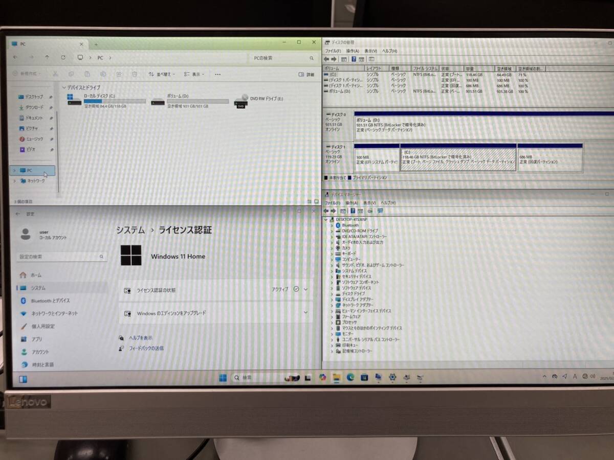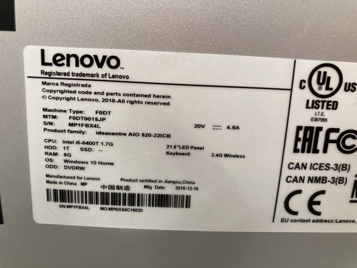 lenovo 一体型 22インチ ideacentre aio 520-22icb f0dt /win11home /intel i5-8400t /hdd 1tb +m.2 nvme 128gb/メモリ 16gb拡張 /アダプタ