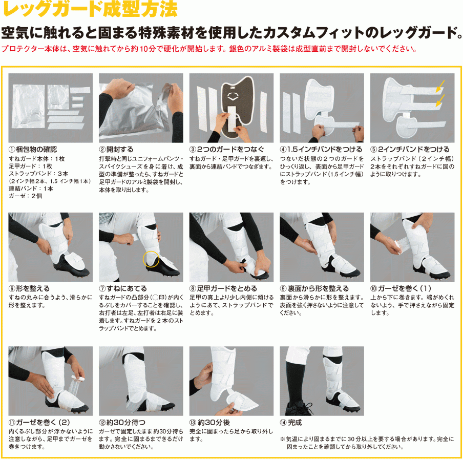 | ≪MLBプレーヤーが多数使用≫ ・MLBプレーヤーに大人気のプロテクティブギアが日本オリジナルで新登場。空気に触れると固まる特殊素材を使用したカスタムフィット。 ・自分の身体に合わせて成形できるため、ジャストフィットでスイング動作のジャマにならない。 |