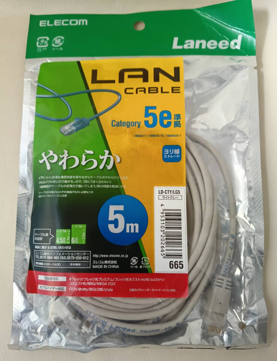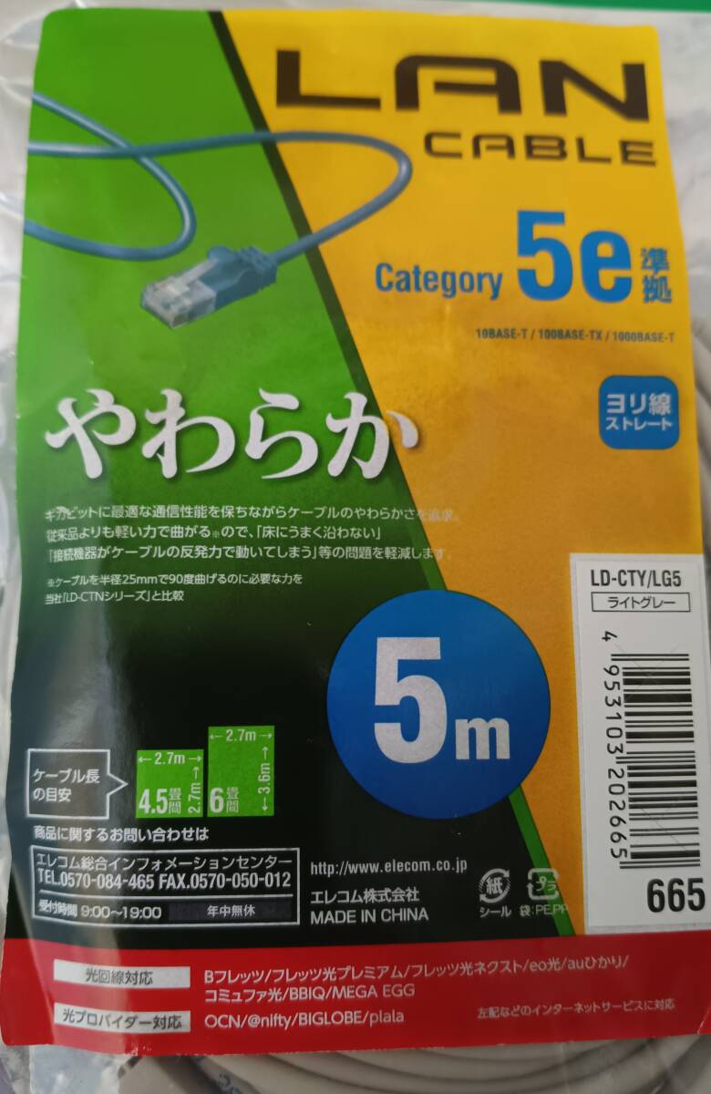 送料無料【訳あり・未使用品】エレコム LANケーブル 5m CAT5e ライトグレー■カテゴリー5e■伝送速度:1Gbps