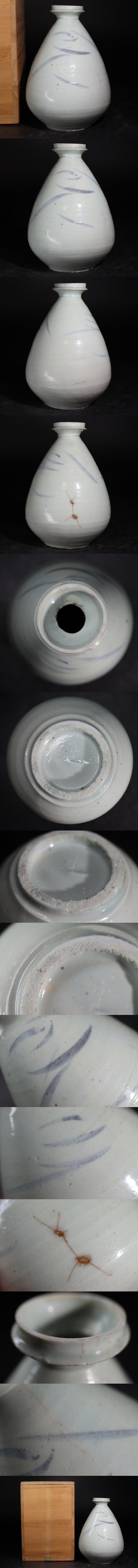 | 時代 李朝 染付 草文 徳利 木箱付 / 朝鮮古美術 酒器 茶器 煎茶道具 煎茶飾 .G3585 |