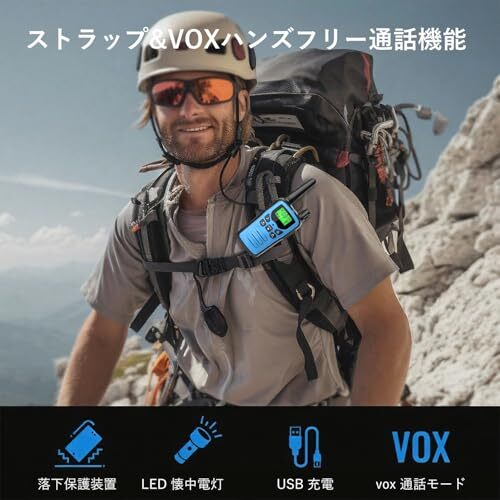 実用的な機能: これトランシーバーセットはVOXハンドフリー機能付き、LED懐中電灯内蔵、耐久性、クリスタルサウンド、自動省電力、ローバッテリーアラーム、オートスキャンチャンネル. 同じチャンネルに設定すると、複数人での通話が可能です、 USB充電機能コスト、環境保護を節約、でき充電機器を見つけるのは簡単です。